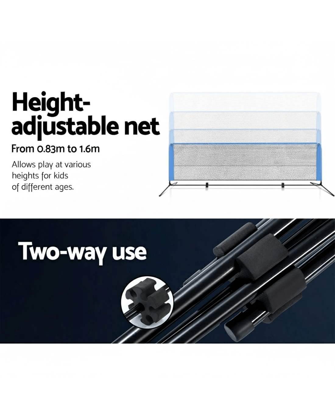 Everfit 3m Badminton Tennis Net Portable Volleyball Kit Adjustable Height - Multi