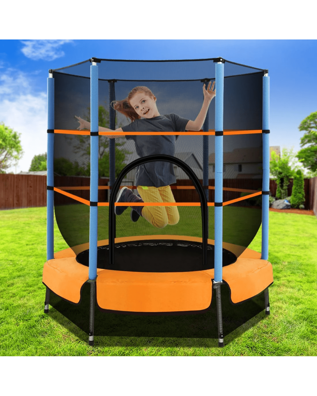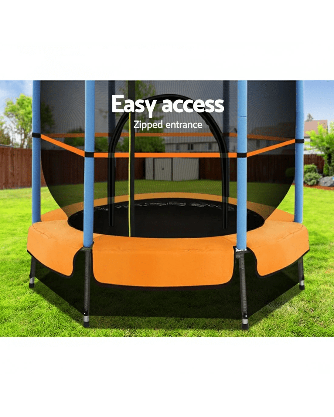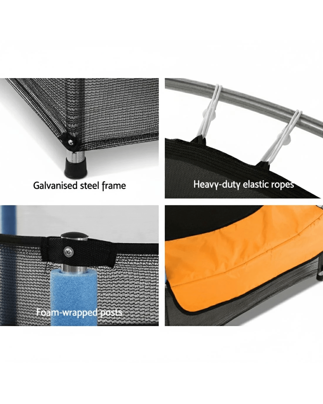 Let your kids bounce to their hearts' content with our 4.5ft Mini Trampoline. Recommended for children aged 3 to 8 years with a maximum weight capacity of 25kg, the modest footprint of the trampoline makes it perfect for smaller houses and townhouses with limited backyard space. With its superior bounce characteristics featuring 30 heavy-duty elastic ropes, the trampoline is small in size but big on safety to enable safe and durable bouncing with no worries. The heavy-gauge galvanised steel framework is designed to handle all robust play and the anti-graze mat is UV-tested for quality and reliability. Other great features include UV-stabilised padding, foam-wrapped posts and safety netting with zipped entry. So jump to it and order our trampoline today.