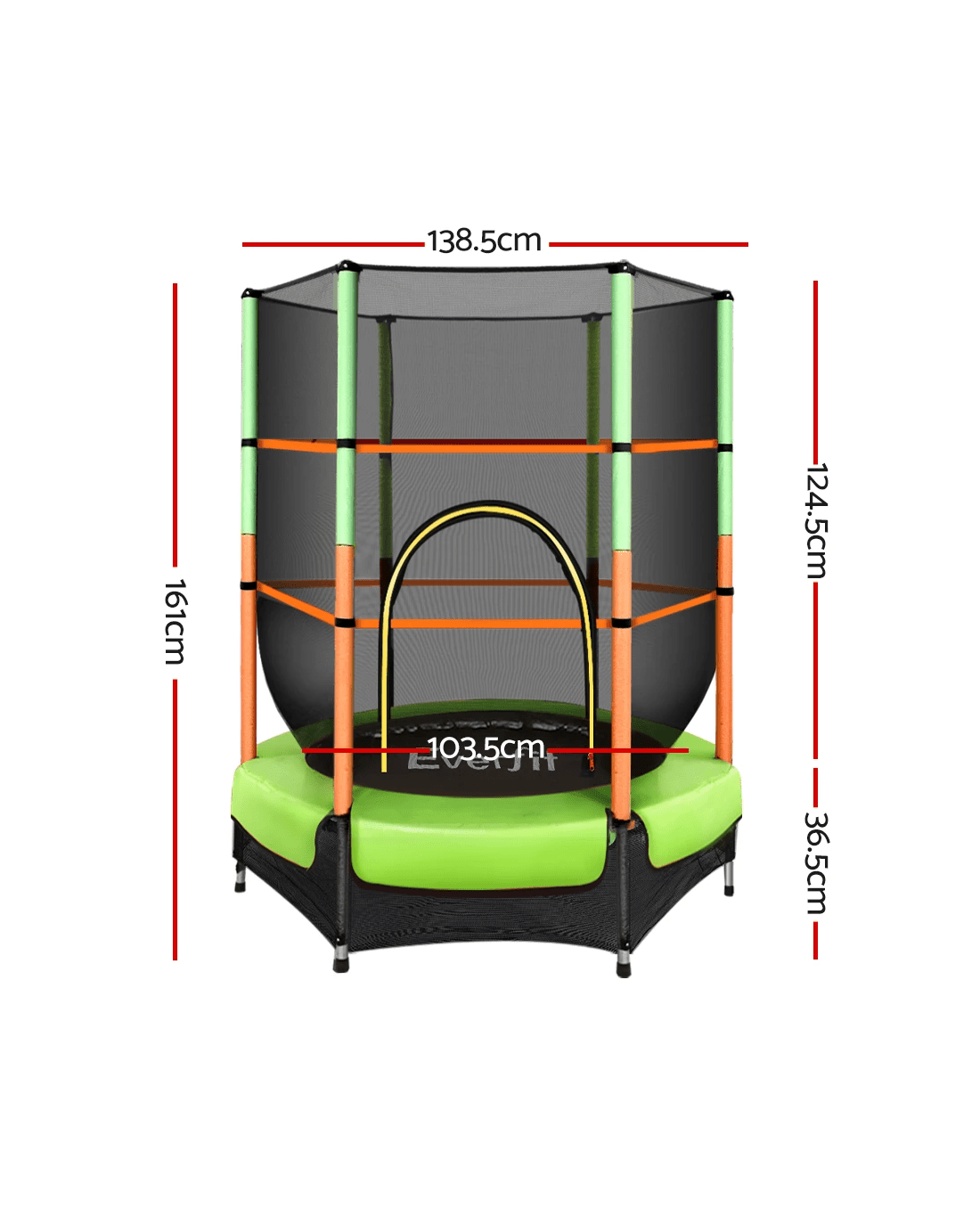 Let your kids bounce to their hearts' content with our 4.5ft Mini Trampoline. Recommended for children aged 3 to 8 years with a maximum weight capacity of 25kg, the modest footprint of the trampoline makes it perfect for smaller houses and townhouses with limited backyard space. With its superior bounce characteristics featuring 30 heavy-duty elastic ropes, the trampoline is small in size but big on safety to enable safe and durable bouncing with no worries. The heavy-gauge galvanised steel framework is designed to handle all robust play and the anti-graze mat is UV-tested for quality and reliability. Other great features include UV-stabilised padding, foam-wrapped posts and safety netting with zipped entry. So jump to it and order our trampoline today.