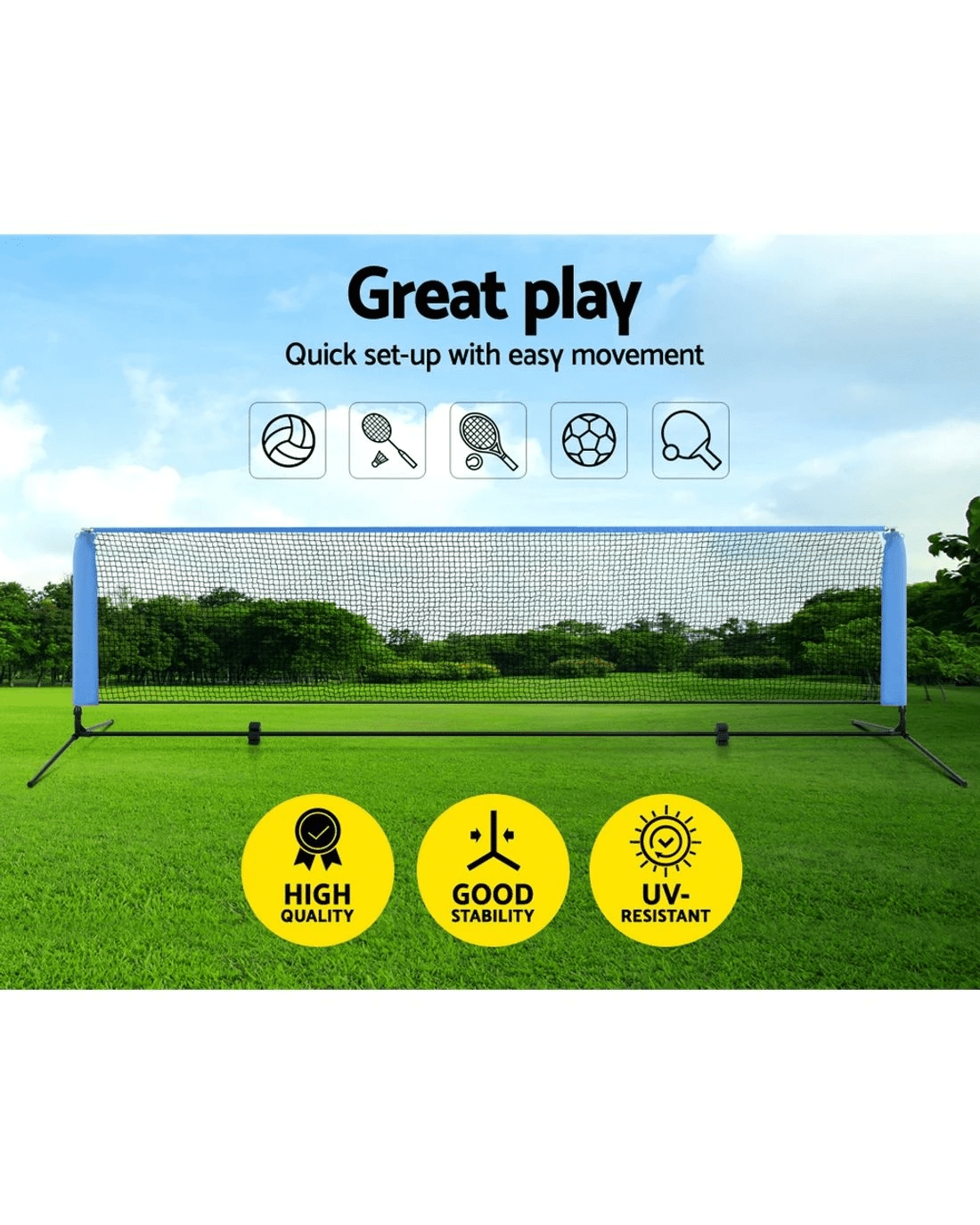 Sold by Aisle SixEverfit 4m Badminton Tennis Net Portable Volleyball Kit Adjustable Height - Blue