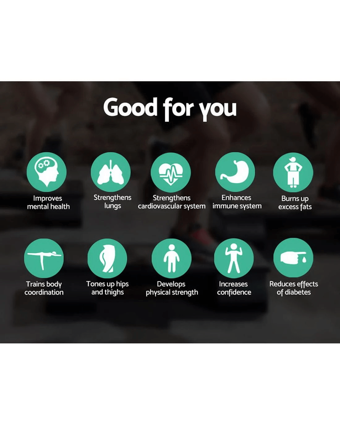 Easily increase the height of your aerobic step with our Everfit step risers. Where each step riser will increase the height of your aerobic by 5cm, you can now perform all sorts of aerobic routines and have a professional workout even when you're at home. Improve your cardiovascular fitness, train your body coordination, burn fat and tone up your hips and thighs! Save money and time from travelling to the local gym. It's that easy!