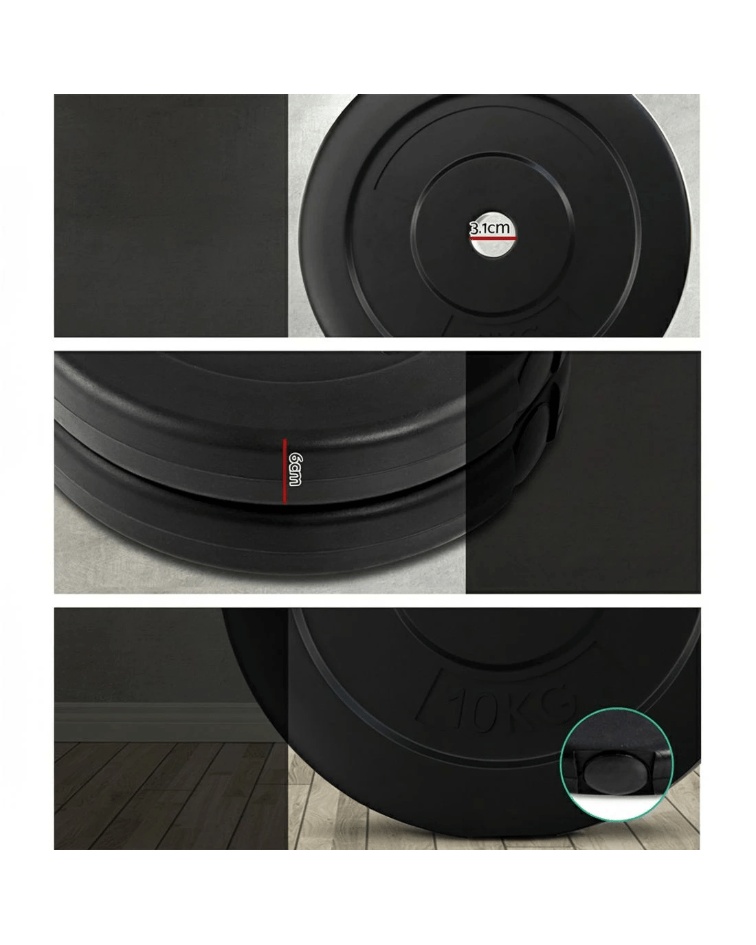 Weight Plates Material: Rubber surface, Cast cement