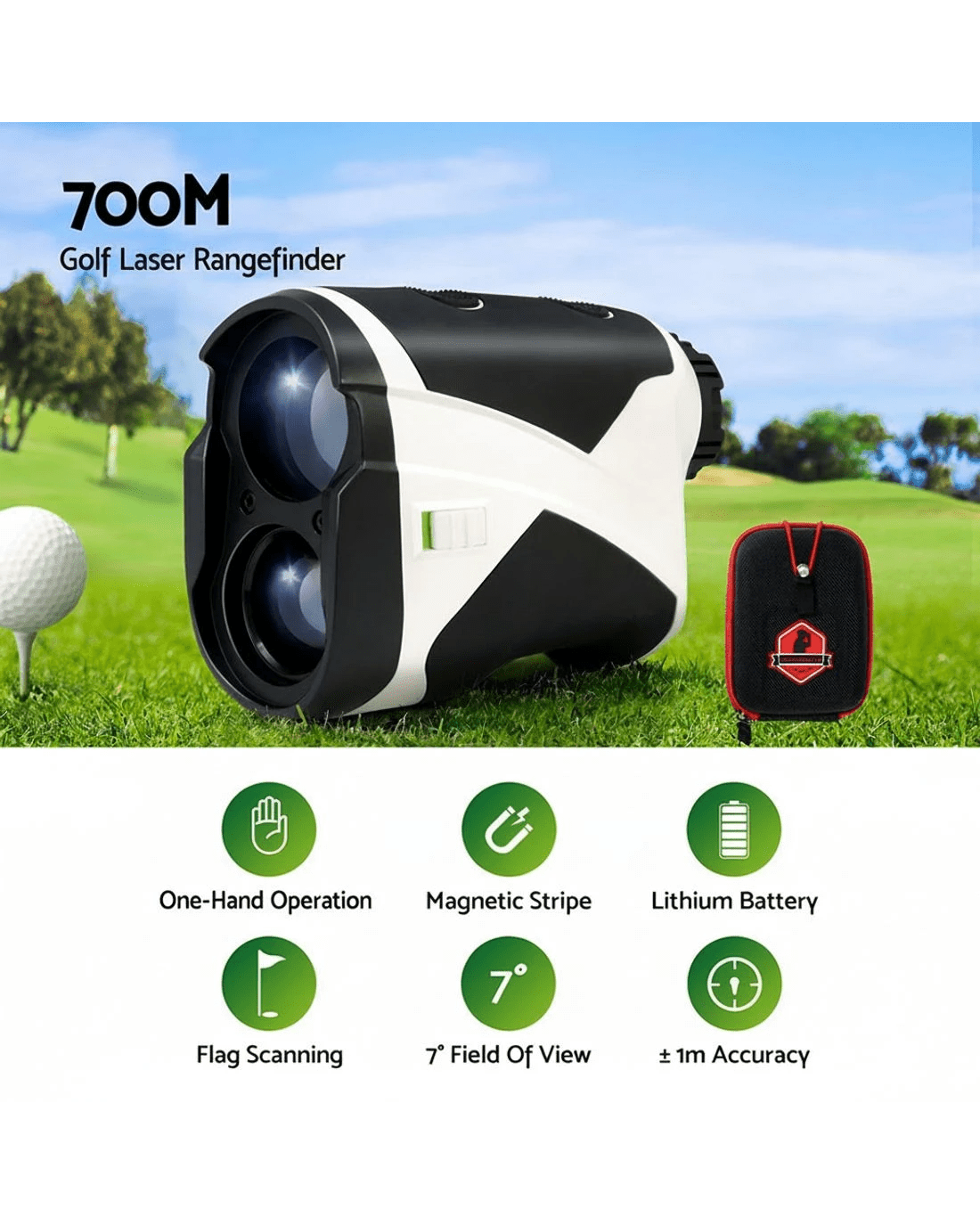 Get ready to improve your golf game with the Everfit Laser Rangefinder. With a range of approximately 700m, the rangefinder can be used to estimate the distance and speed a player will need to hit the ball for a solid hole-in-one. The rangefinder can be operated with one hand that can be attached to your golf caddy or other metal appliances for convenience. 6x magnification makes it easy to see at a distance, while the ±5D dioptre can be easily adjusted to suit myopia and hyperopia, enabling naked-eye viewing. Slope compensation and a vibrating flag scanning mode are specifically built for golf enthusiasts. With an ultra-clear LCD screen and distance, angle and continuous measurement available, the rangefinder can also be used for a variety of applications such as sailing, racing, archery, climbing and construction. A built-in lithium battery with type-C input charging will keep the rangfinder going for long-term gaming. Play like a pro and cut your shots in half with the Everfit Laser Rangefinder.