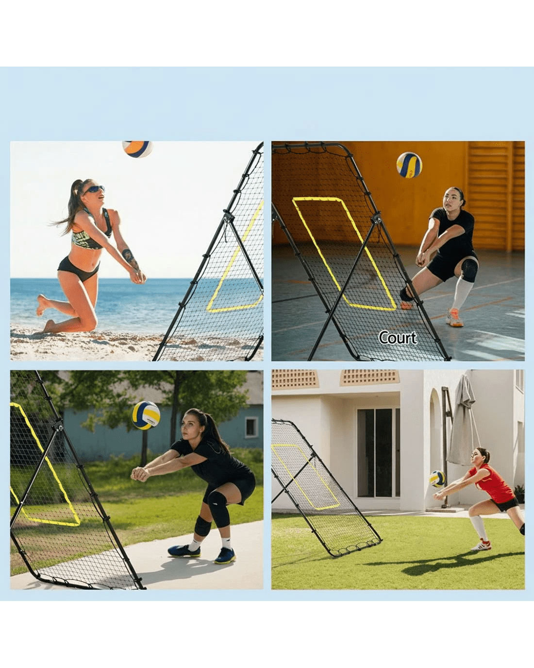 Everfit 7ft 2.1M Volleyball Net Football Baseball Goal Netting with Frame Angle Adjustable Rebounder - Black