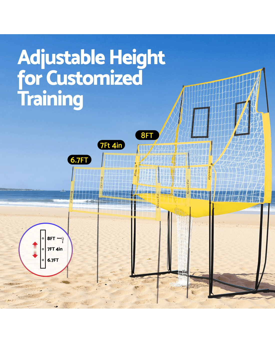 Level up your volleyball skills with this top-notch free-standing net! Perfect for solo or dual practice, it sets up in a flash on the beach or in the backyard ect. Features adjustable height, a nice ball return, and includes a durable PVC ball and compact carry bag. Get ready to serve, spike, and improve your game anywhere!