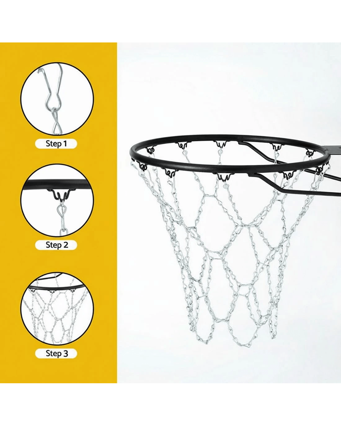 Take your jump shots to the next level with this heavy-duty basketball net. The tough steel chain ensures it can handle even the most powerful plays, while the steel chain net with 12 hooks guarantees long-lasting performance. This net is easy to assemble, so you can get ready to dominate the court in no time!