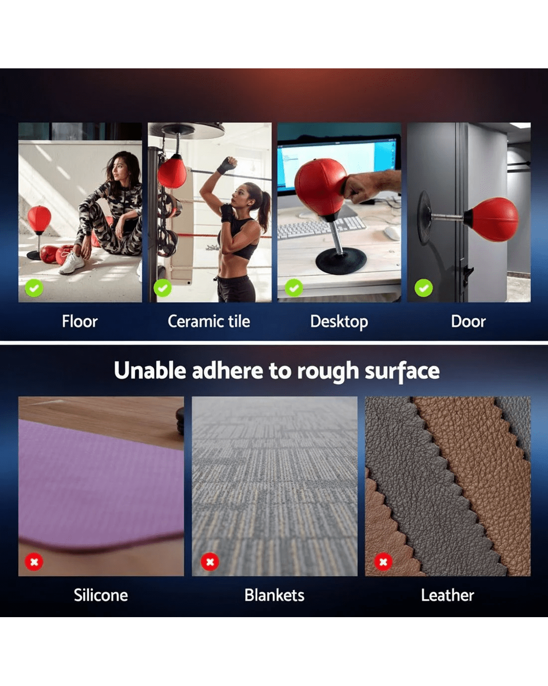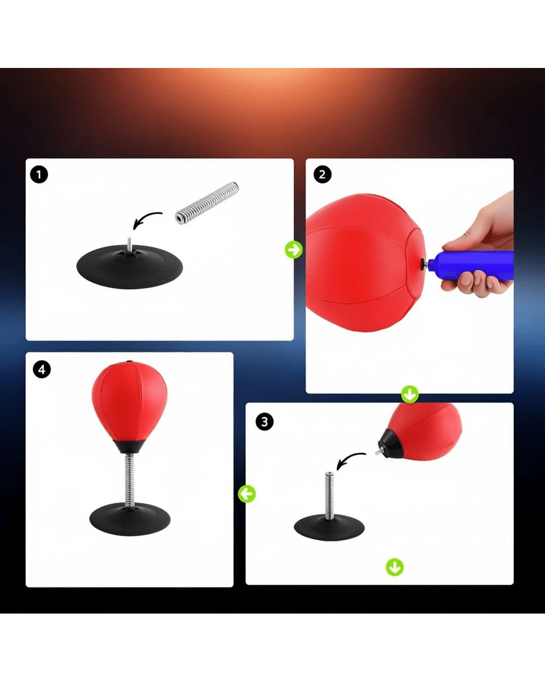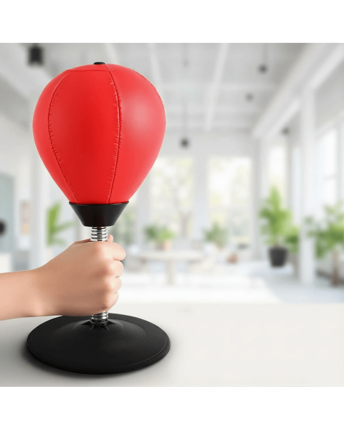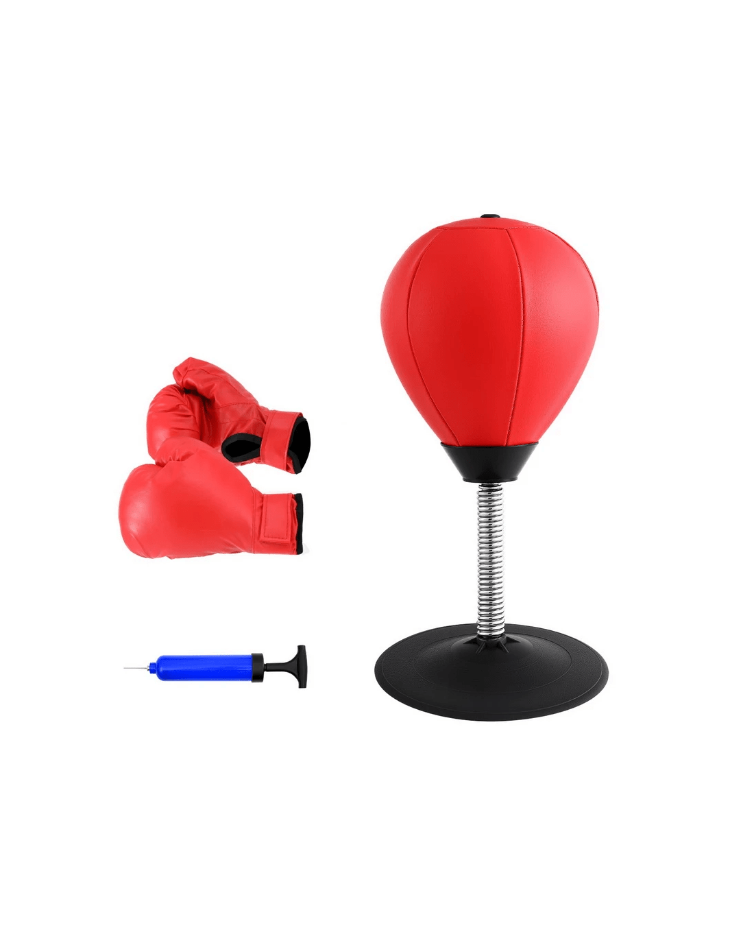 This Everfit Desktop Boxing Set transforms any workspace into an instant stress-relief zone. The vacuum-sealed TPR base grips firmly to desks/tables while the responsive swivel mechanism provides realistic rebound. Perfect for quick focus breaks between tasks, its compact 36cm design fits laptop workstations without clutter. Includes rapid-inflation pump and requires no tools – ready for office or home use in 2 minutes.
