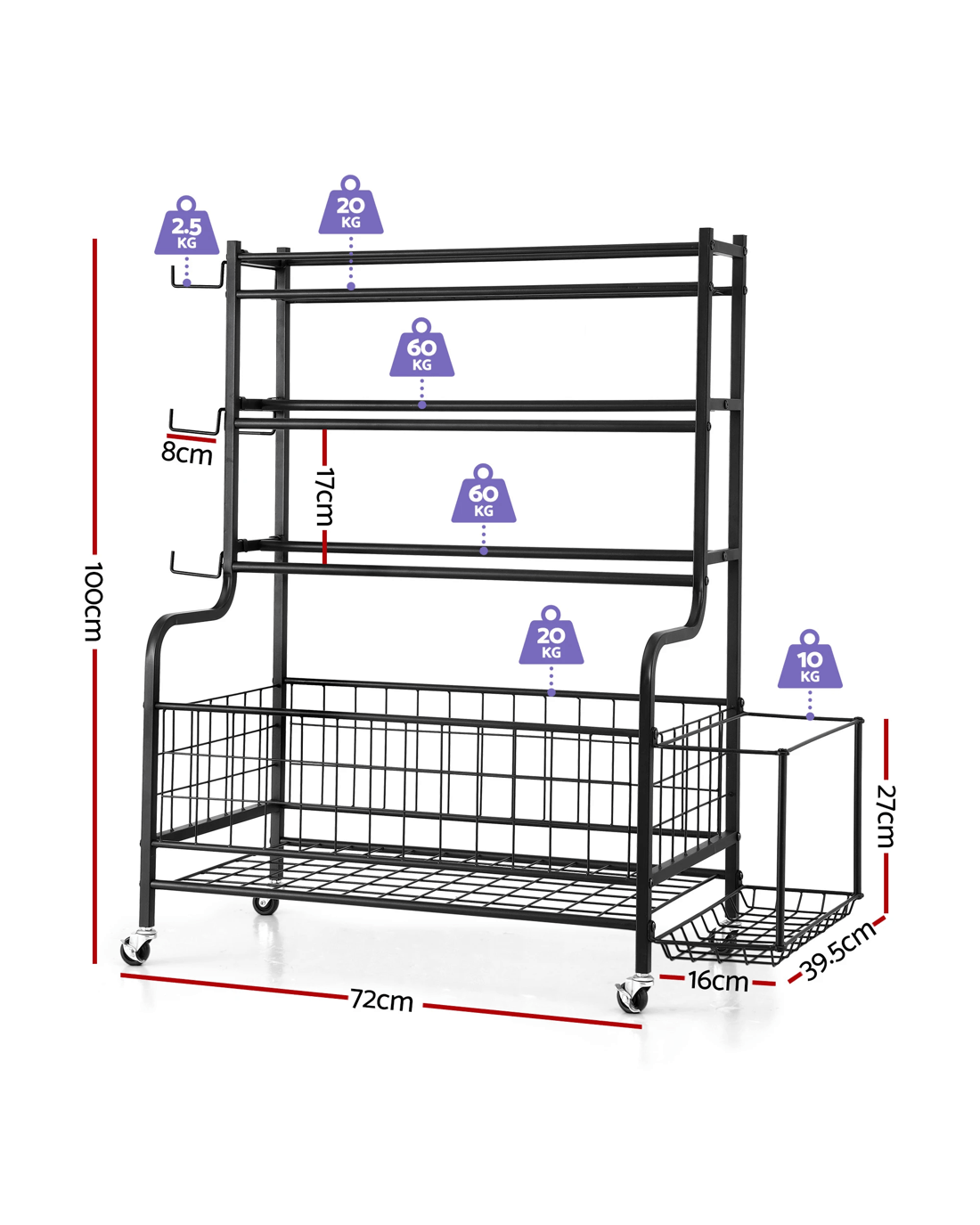 The Everfit Dumbbell Rack revolutionizes home gym organization with its versatile storage solution. Designed for fitness enthusiasts and small studios alike, this rack features dedicated spaces for dumbbells, kettlebells, yoga mats, and other accessories. The industrial-grade iron frame withstands daily use while the scratch-resistant black finish complements modern decor. Four dual-function wheels (two lockable) provide smooth mobility across floors, and the compact design maximizes space efficiency. Ideal for garages, basements, or dedicated workout rooms.