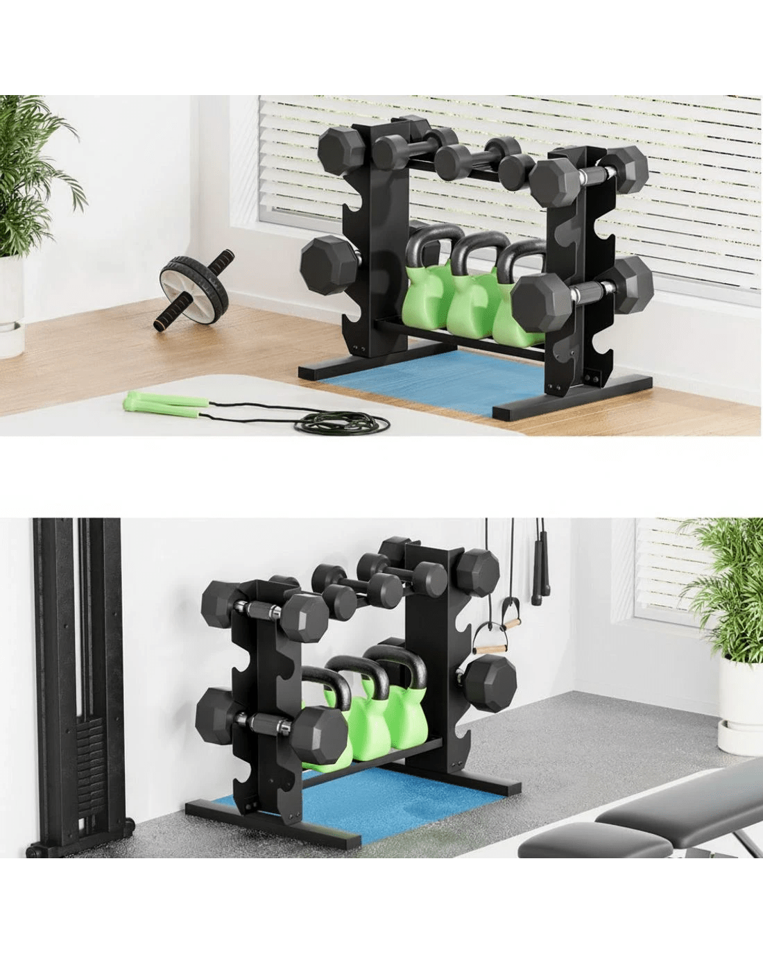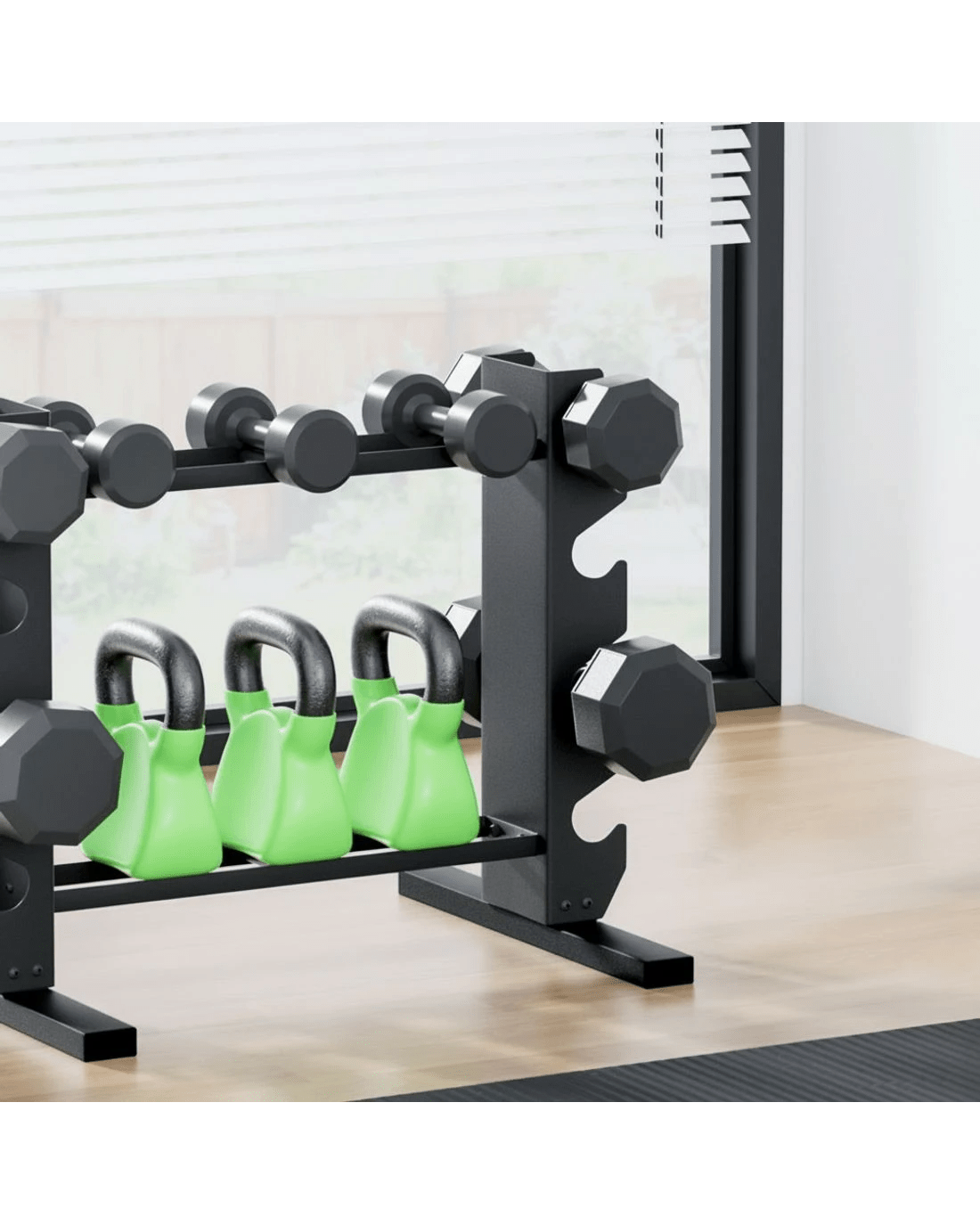 Keep your gym clutter-free with the Livemor Dumbbell Rack! This compact dumbbell rack boasts a 200kg capacity, ideal for heavy dumbbells, kettlebells, and plates. Its 2-tier, multi-layer design maximizes space while keeping weights secure. Durable steel construction ensures stability. Perfect for home gyms – organize smarter, train harder!