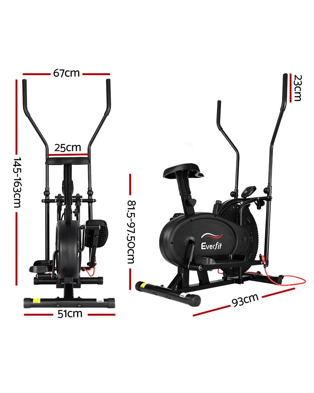 Everfit Exercise Bike 4 in 1 Elliptical Cross Trainer Home Gym Indoor - Black