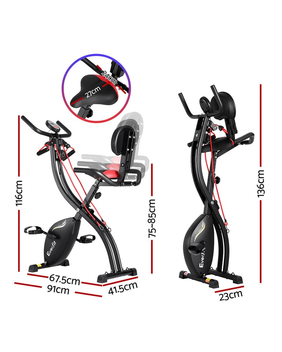 Everfit Folding Exercise Bike Magnetic X-Bike Indoor Cycling Resistance - Black