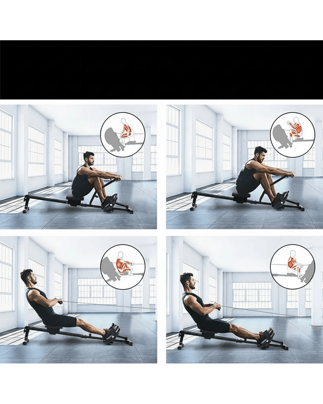 Everfit Hydraulic Rowing Machine Rower 12 Levels Resistance Exercise Fitness Gym - Black