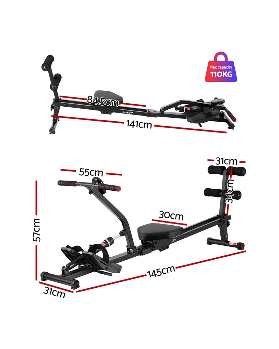 Everfit Hydraulic Rowing Machine Rower 12 Levels Resistance Exercise Fitness Gym - Black