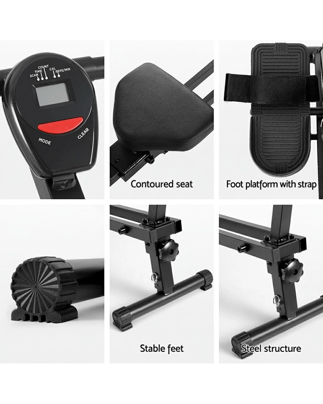 Experience a full-body workout with the Everfit Rowing Machine. This compact and efficient fitness equipment features a hydraulic system with 36 workout intensities, suitable for users of all levels. Its space-saving foldable design and quiet operation make it perfect for home use. Track your progress with the built-in LCD display as you row your way to better health and fitness.