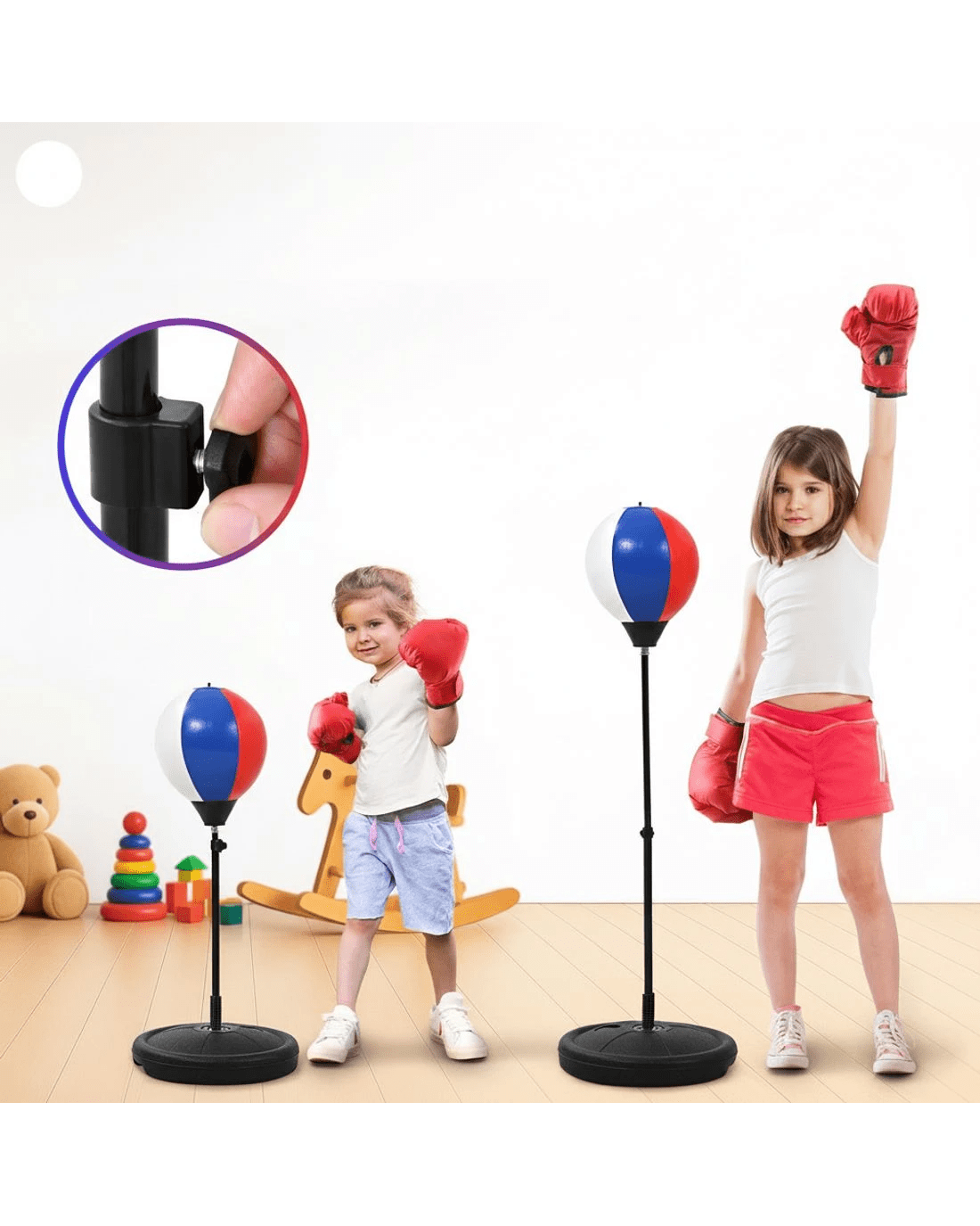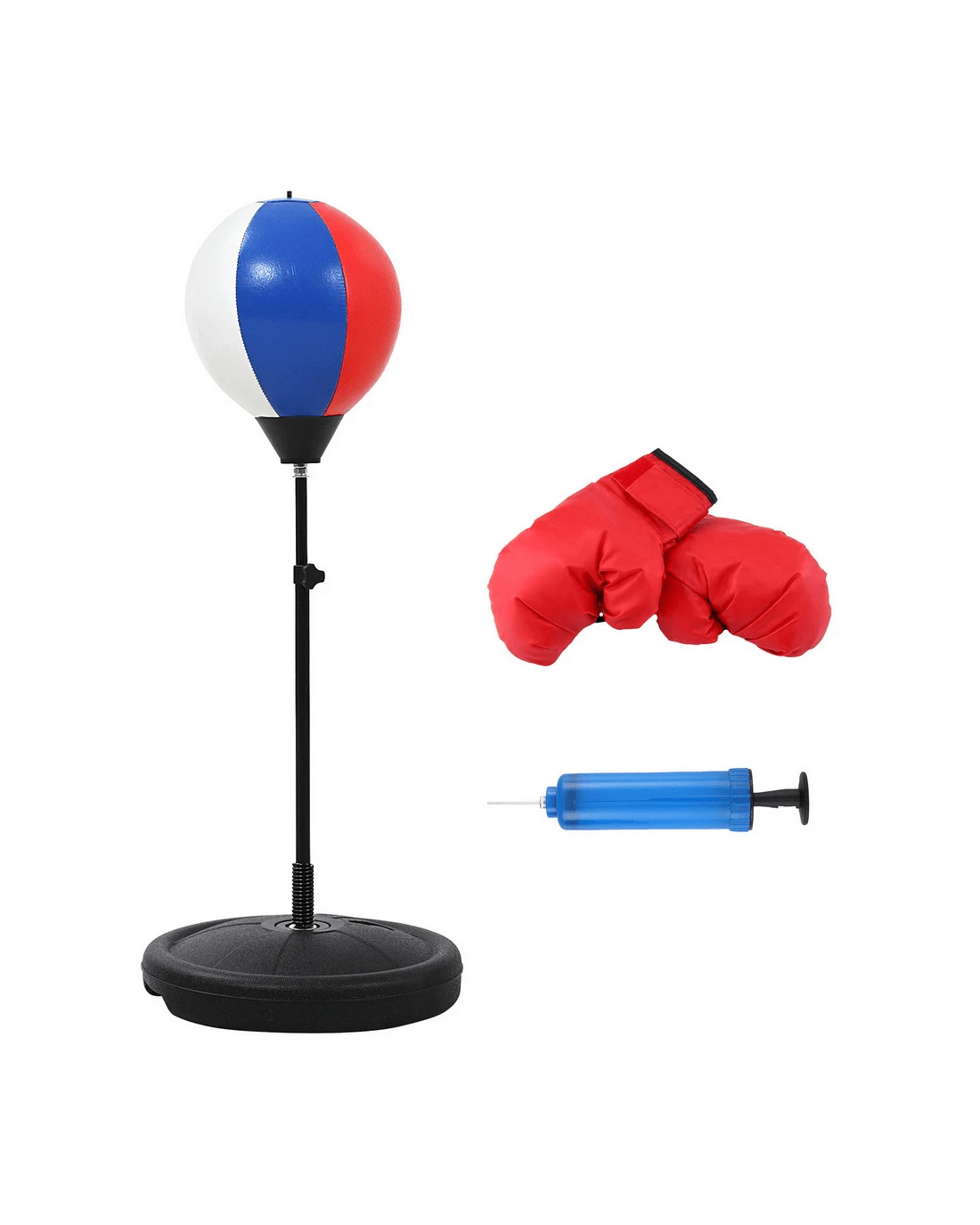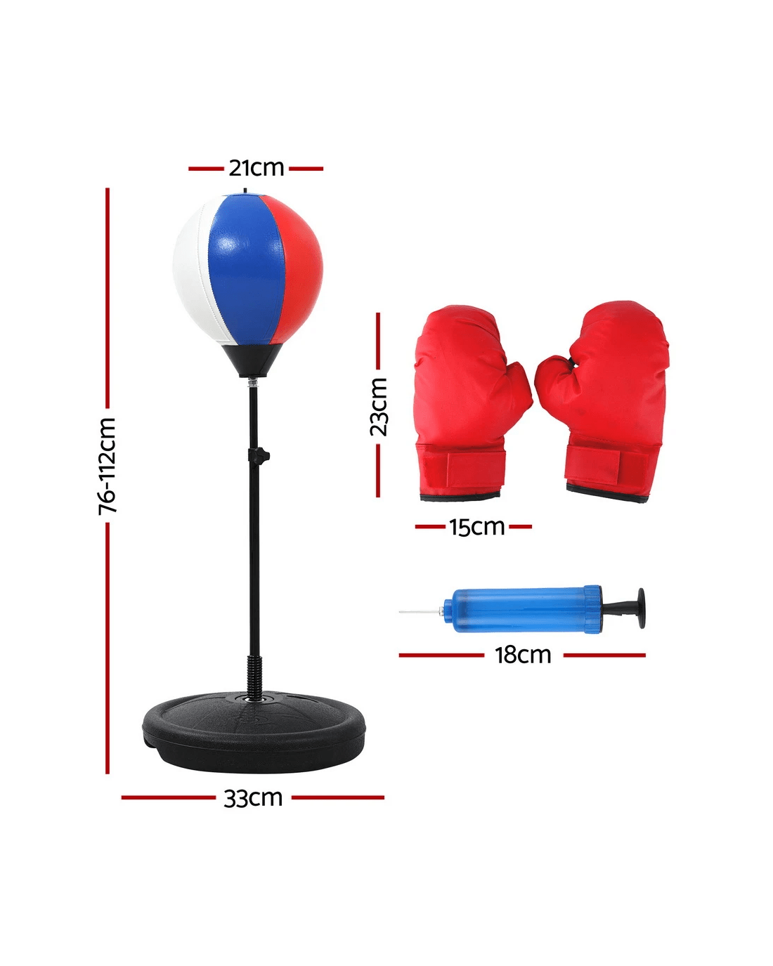 This Everfit Junior Boxing Set provides safe physical development for children aged 6-12. The freestanding design adjusts from 76-112cm to grow with your child, while the weighted base (water/sand-fillable) ensures stability during energetic sessions. Includes professional-style gloves and quick-inflate pump for immediate use. The responsive spring mechanism teaches proper striking technique while developing coordination. Ideal for indoor/outdoor active play without permanent installation.