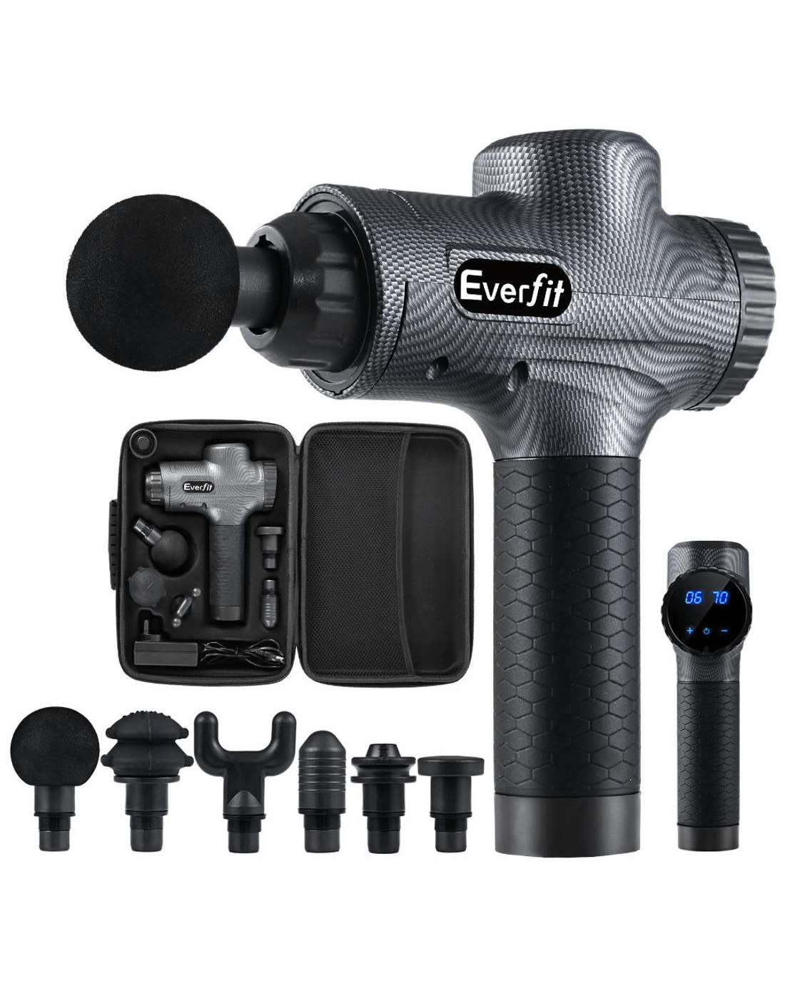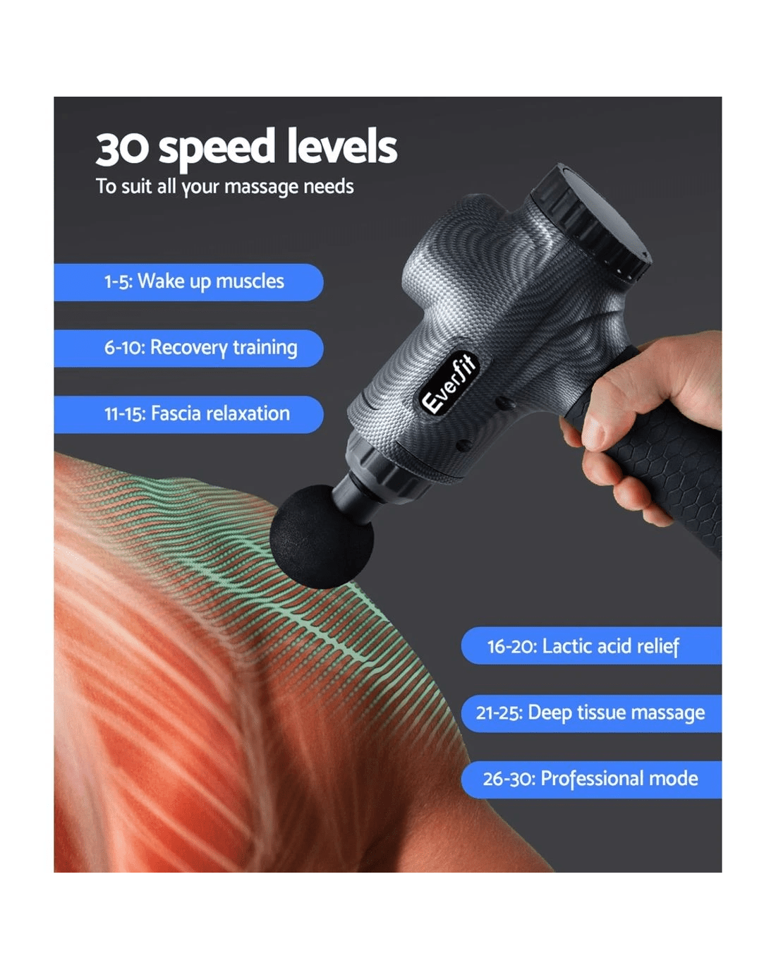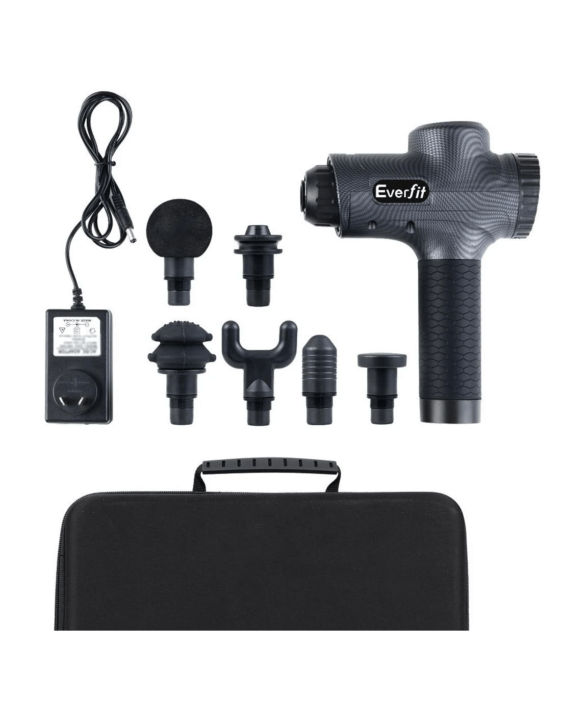 Sold by Aisle SixEverfit Massage Gun 30 Speed 6 Heads Vibration Muscle Massager Chargeable - Charcoal