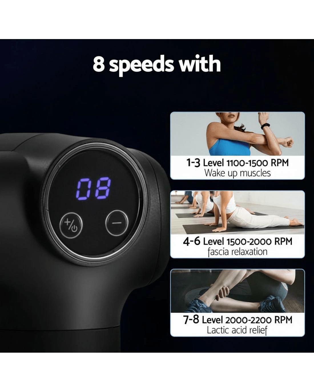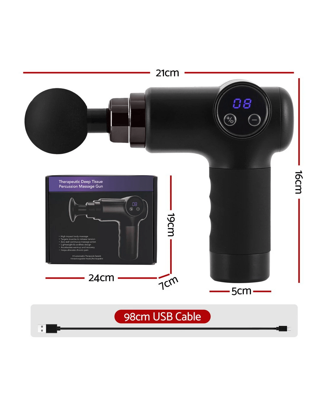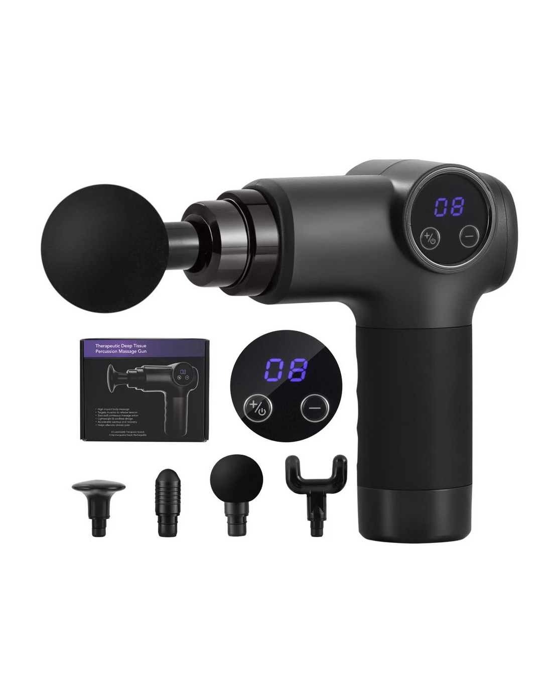 Sold by Aisle SixEverfit Massage Gun 8 Speed 4 Heads Vibration Muscle Massager Chargeable - Black