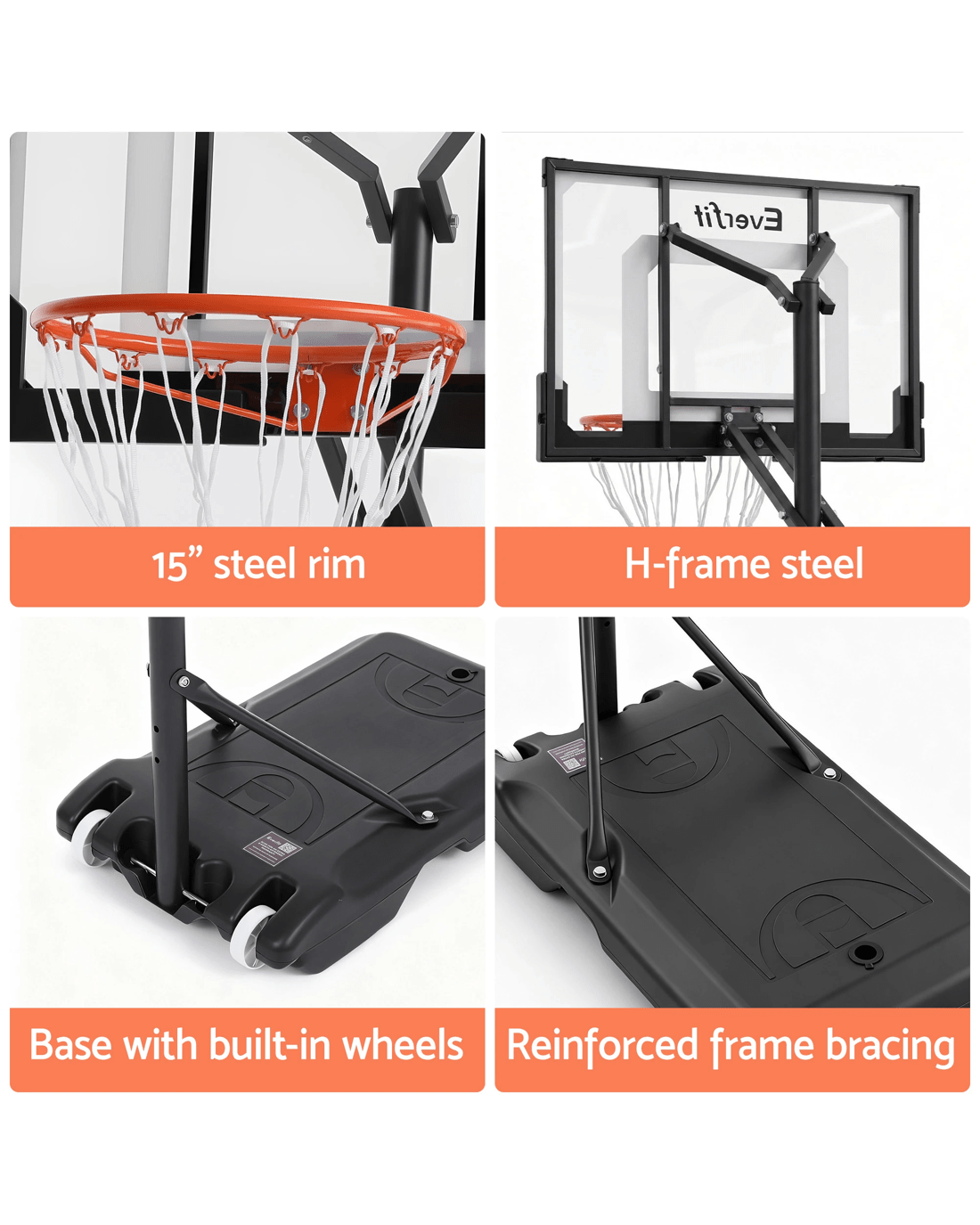 Everfit Portable Basketball Hoop Adju Pool Goal System Backyard 1.05M 2.1M - Black