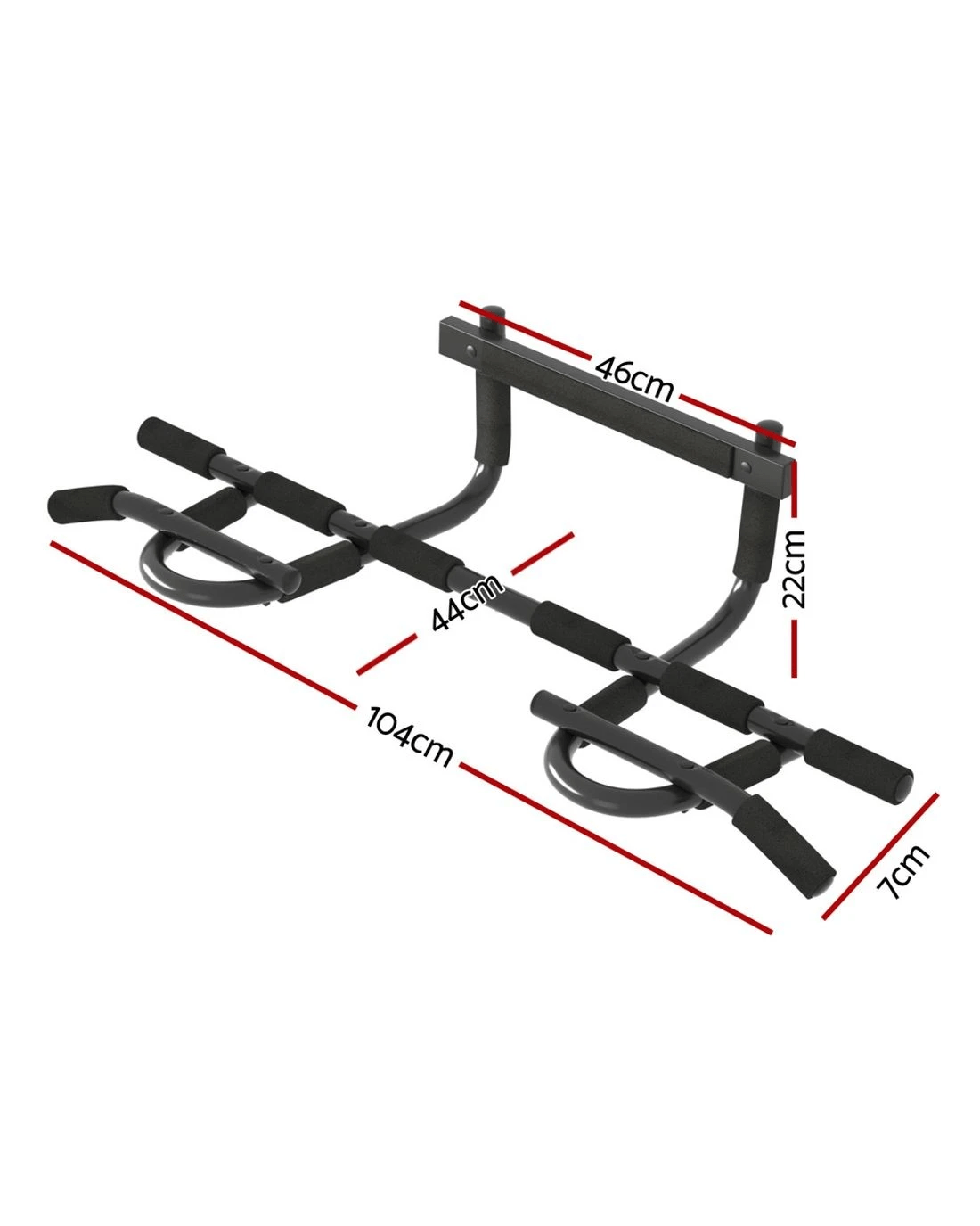 Enjoy flexible, core strengthening exercises anywhere in the home with the Everfit Chin-up Bar. The bar is designed to easily hang above your entryway and is ideal for most modern doorways. The heavy-duty construction keeps the bar in place for safety and support, and the bar has overall weight-bearing support of 136kg. A soft and comfortable foam grip makes it easy to enjoy your favourite exercises anytime. Use for a wide variety of exercises including pull-ups, sit-ups, chin-ups and more. Get your fitness journey up and moving with the new Chin-up Bar from Everfit.