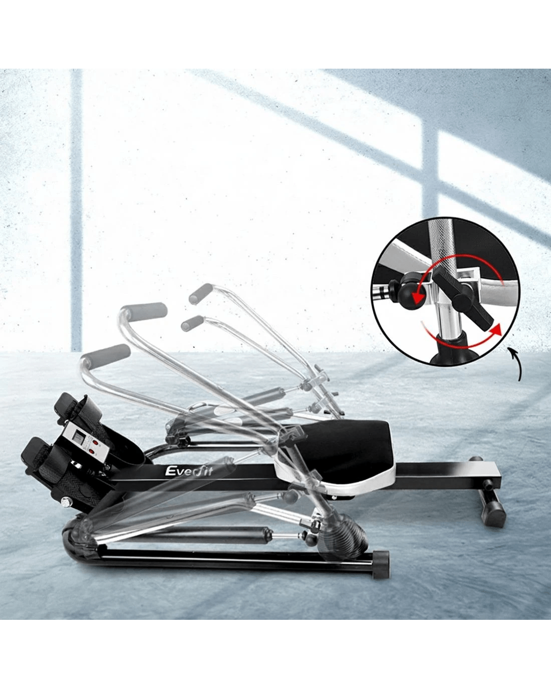 Everfit Rowing Machine Rower Hydraulic Resistance Fitness Gym Home - Black