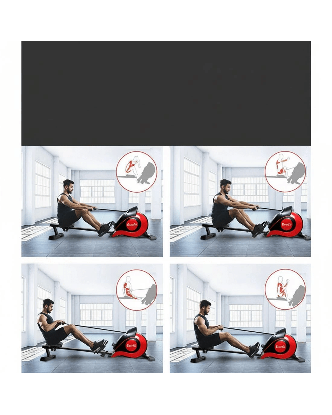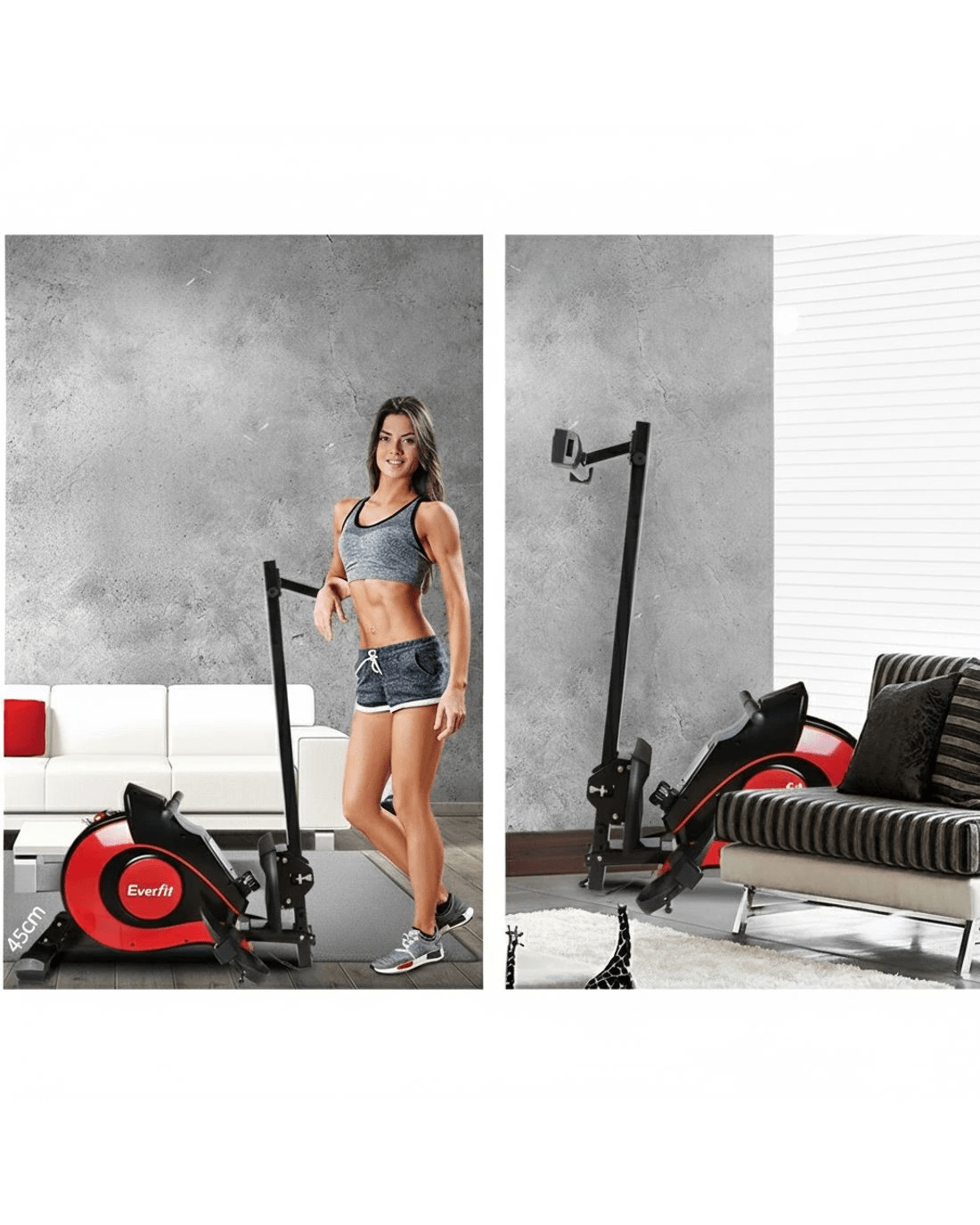 Simple but satisfying. Our Everfit Magnetic Flywheel Rowing Machine, utilizing a magnetic brake system, targets all the major muscle groups for well-toned abs, back and legs. Simply select the workouts you desire, with up to 10 levels of manual resistance, and monitor the progress on the large LCD display console. This fitness machine is just perfect for home fitness routines with its quiet operation and super sturdy frame.