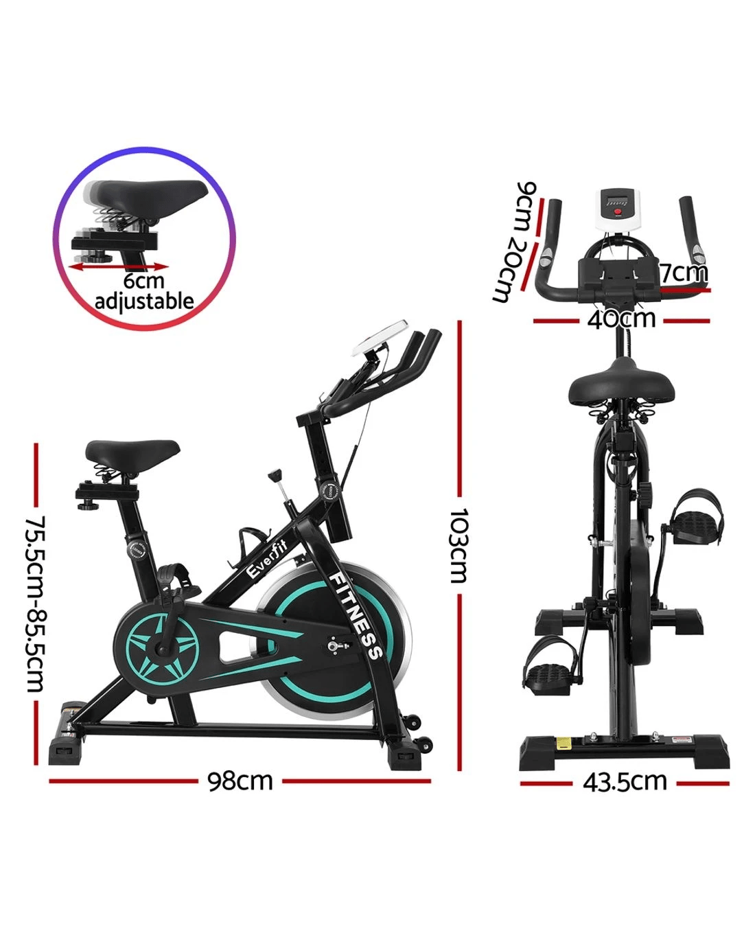 Everfit Spin Bike Exercise Bike 10kg Flywheel Fitness Home Gym 150kg - Multi