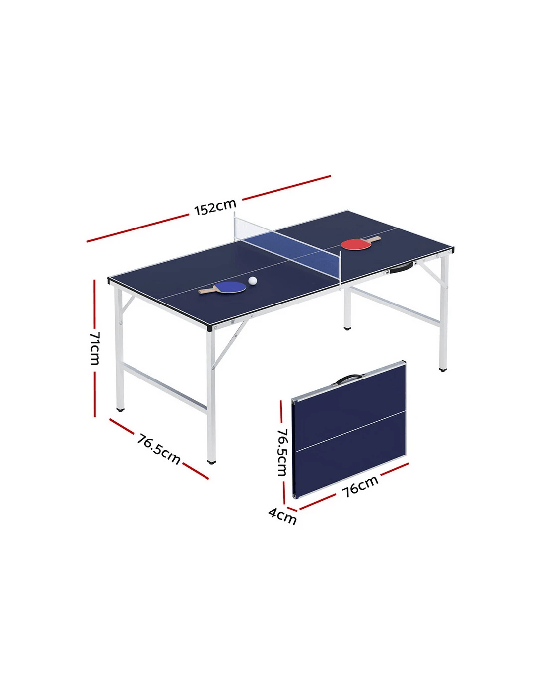 Introducing our versatile Everfit table tennis table, suitable for indoor or outdoor use. With a space-saving design, it's foldable and portable, easy to assemble and store. Features include a high rebound surface, detachable net, and bonus rackets and balls.