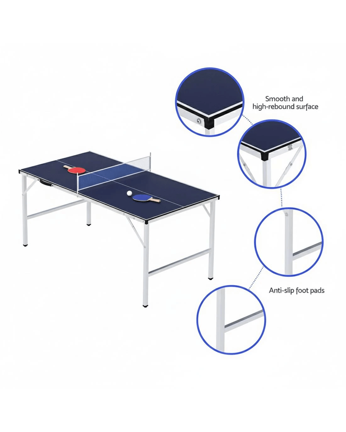 Sold by Aisle SixEverfit Table Tennis Ping Pong Table Portable Foldable Family Game Home Indoor - Blue