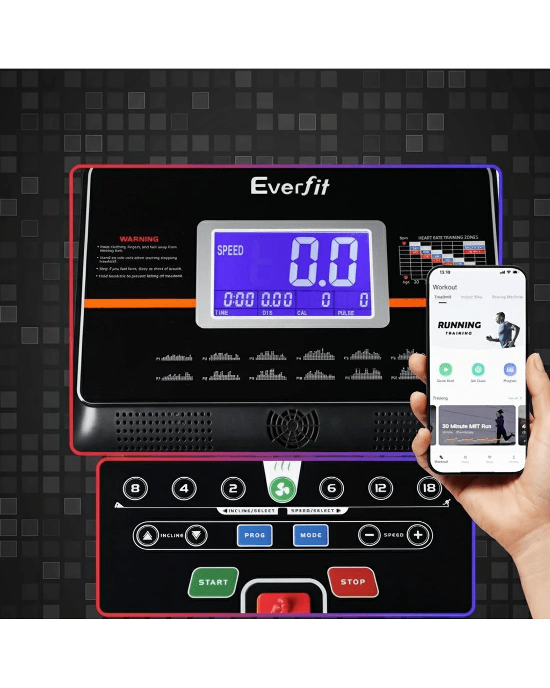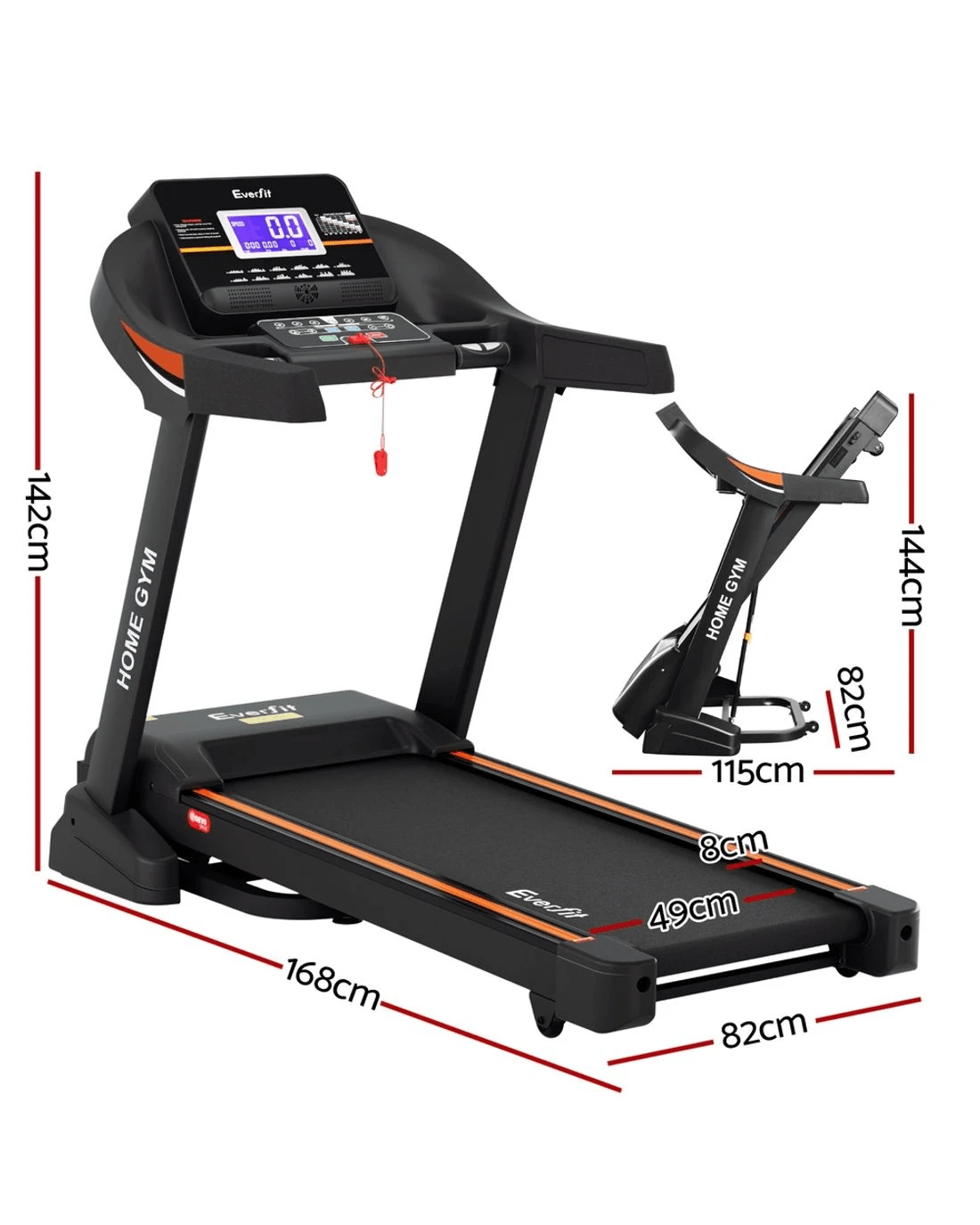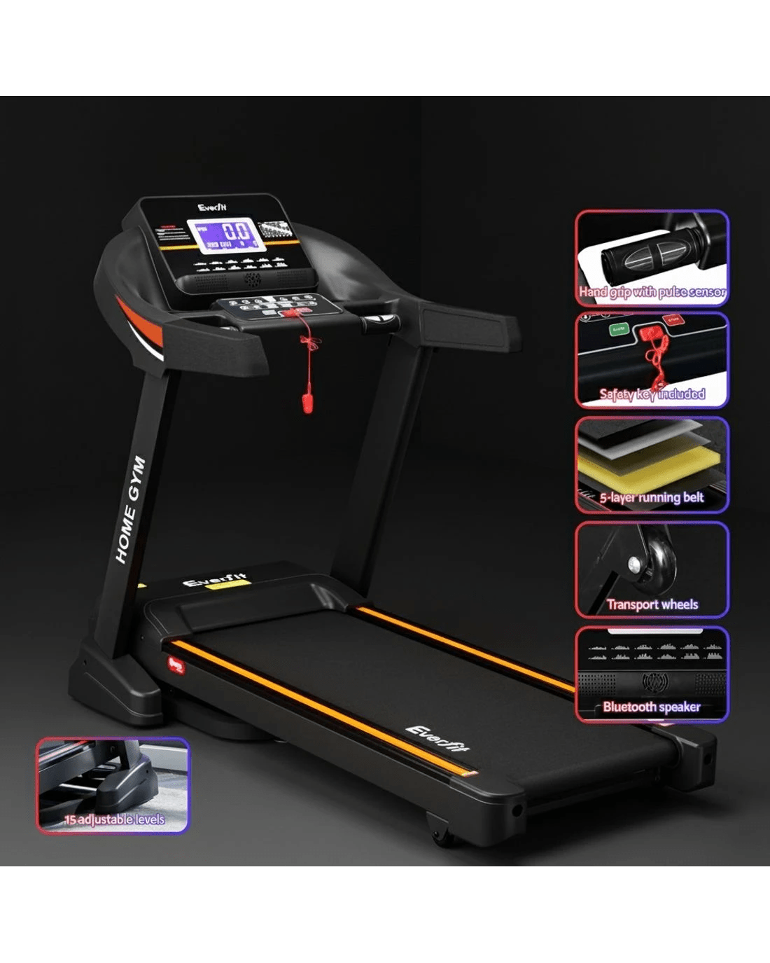 Everfit Treadmill Electric Auto Incline Home Gym Fitness Exercise Machine 490mm - Black