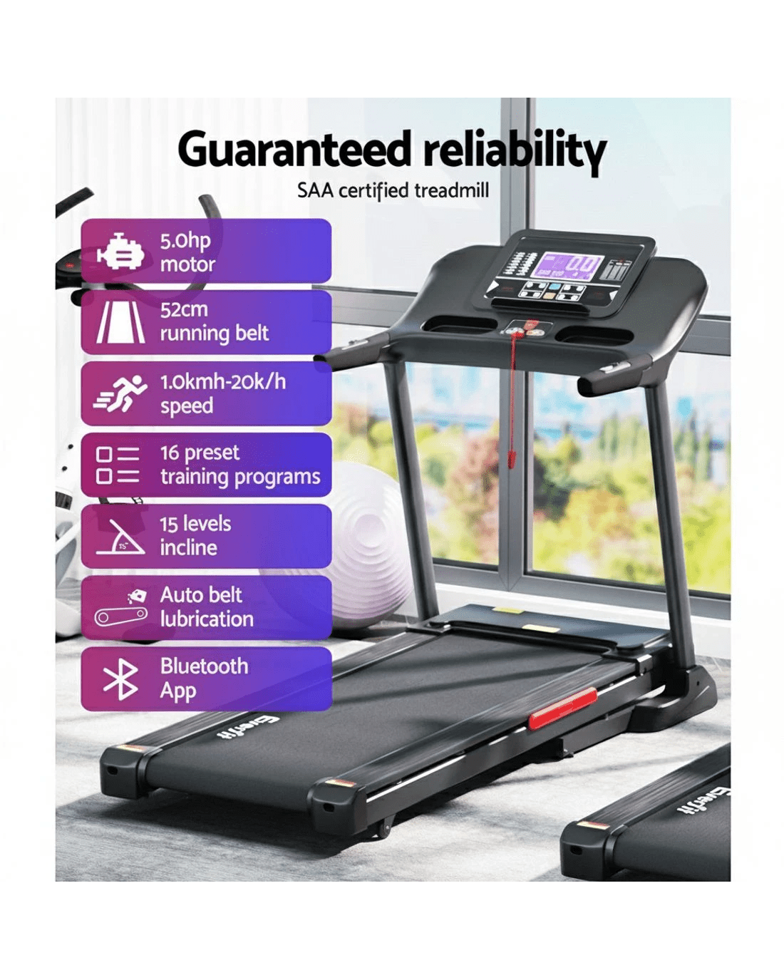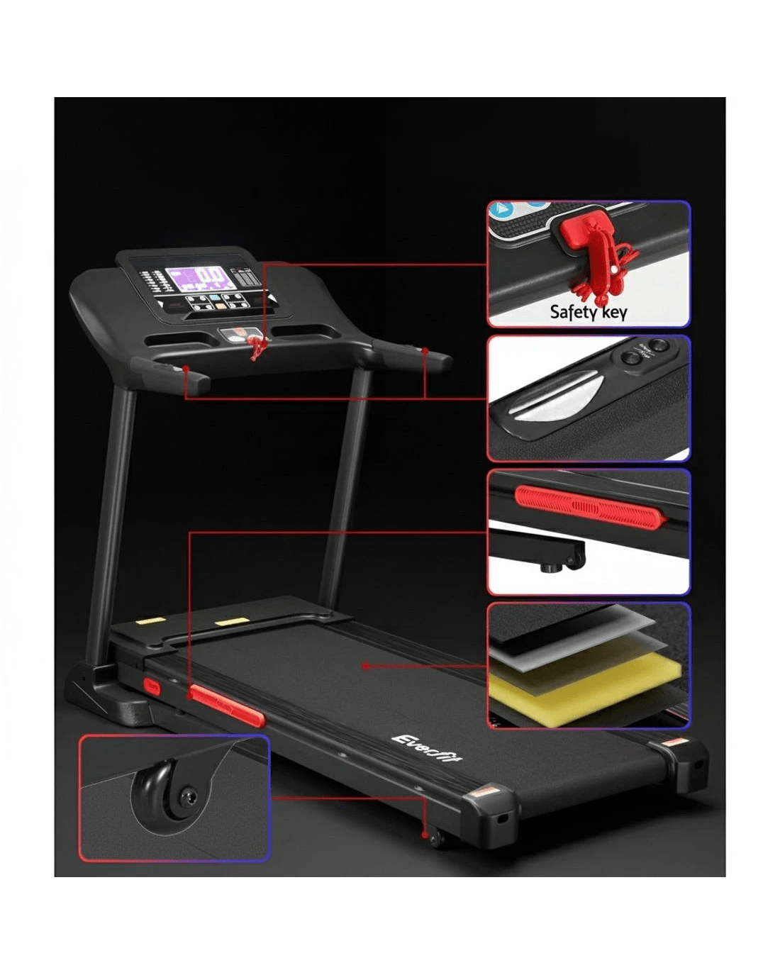 Everfit Treadmill Electric Auto Incline Home Gym Fitness Exercise Machine 520mm - Black
