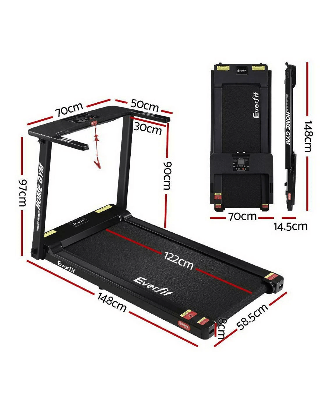 Everfit Treadmill Electric Home Gym Fitness Exercise Fully Foldable 420mm - Black