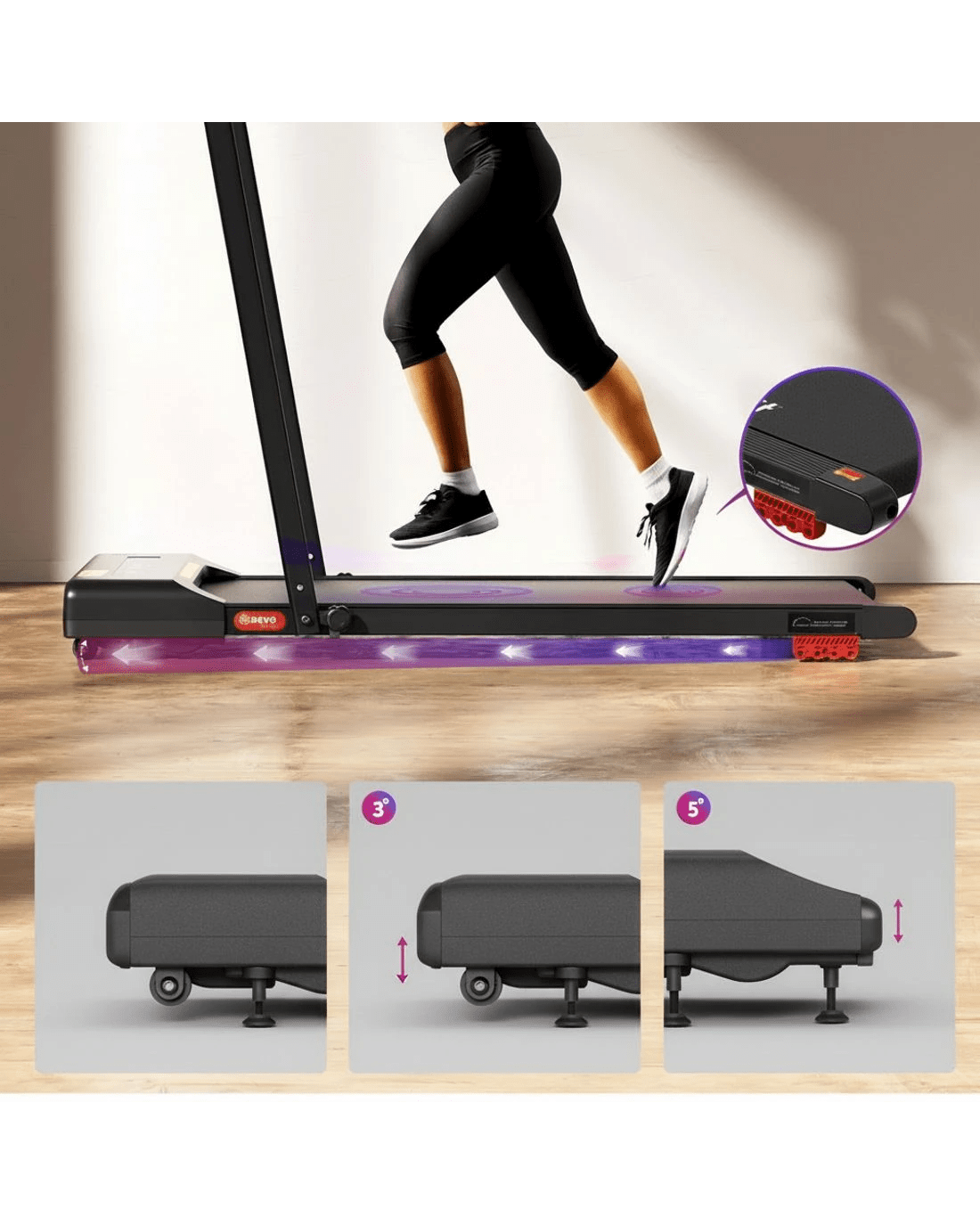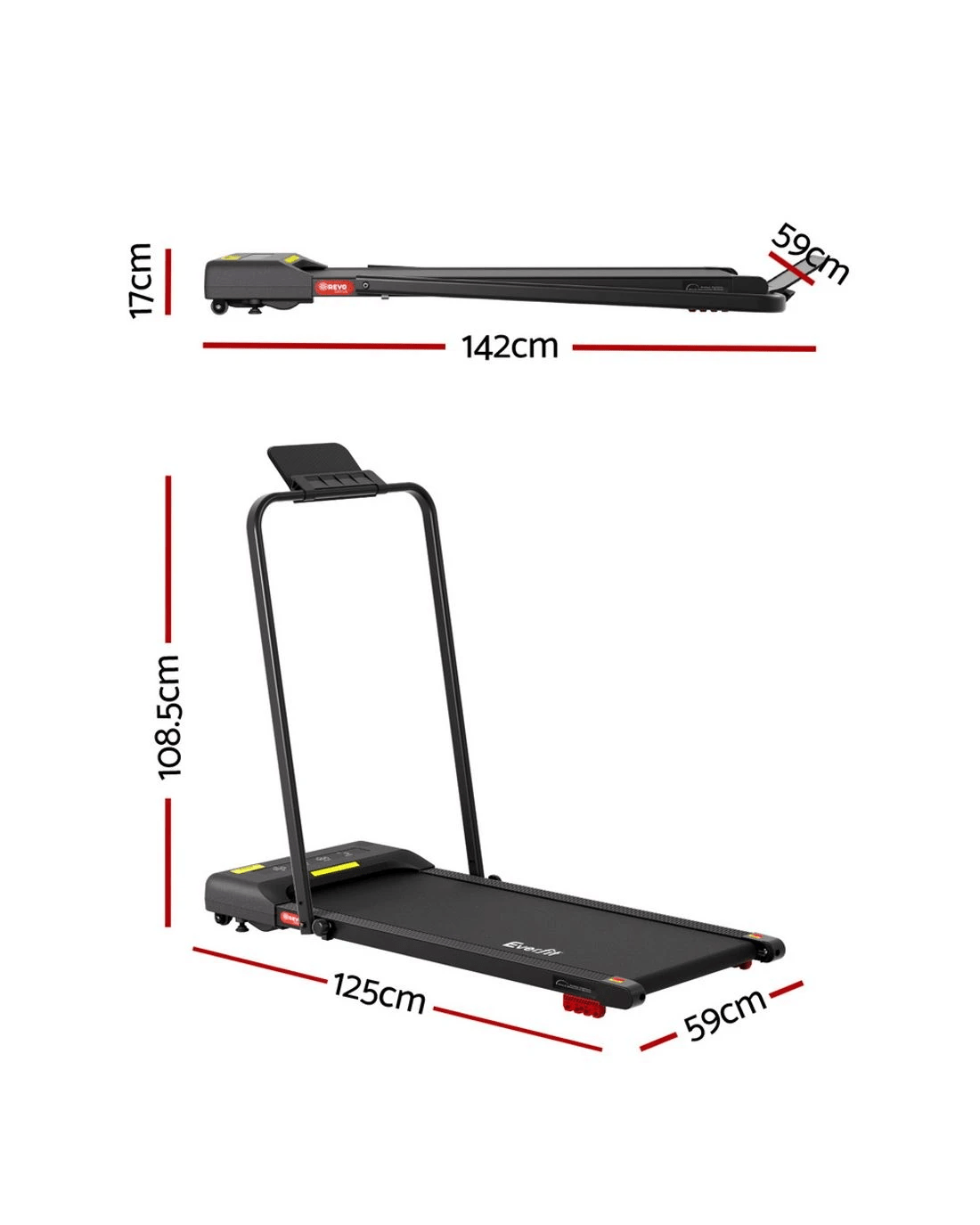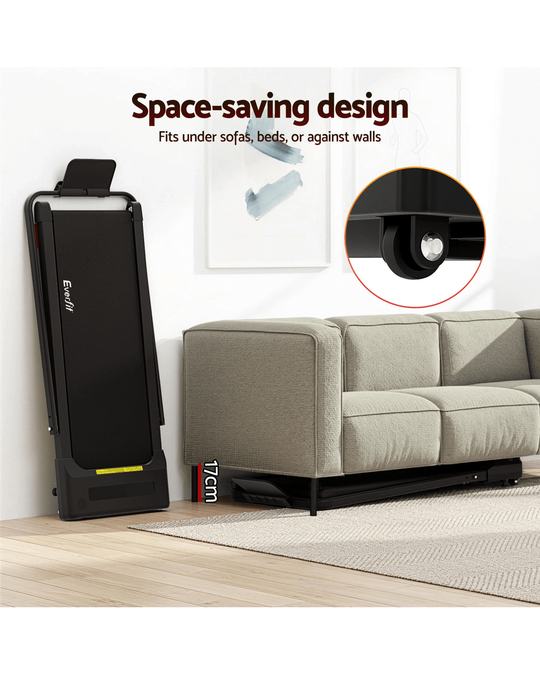 Everfit Treadmill Electric Walking Pad Incline Under Desk 380mm - Black