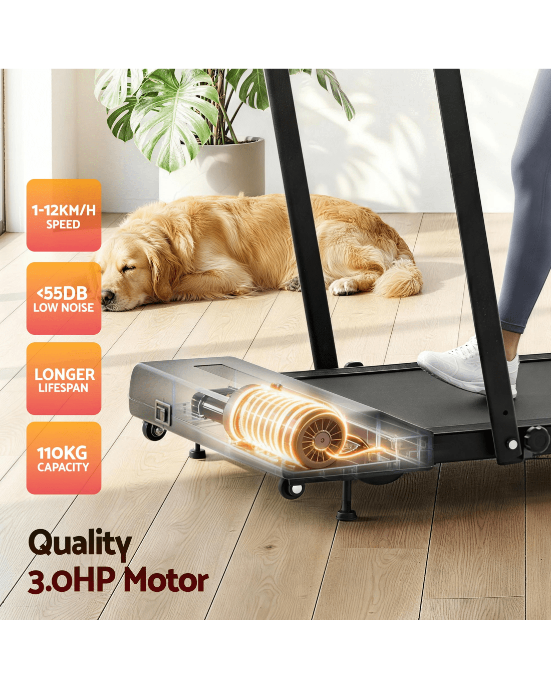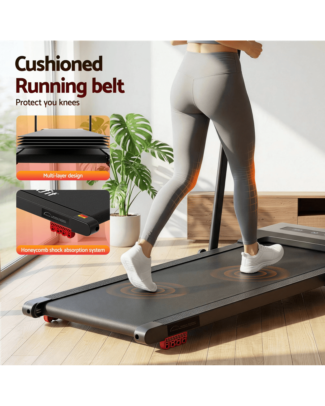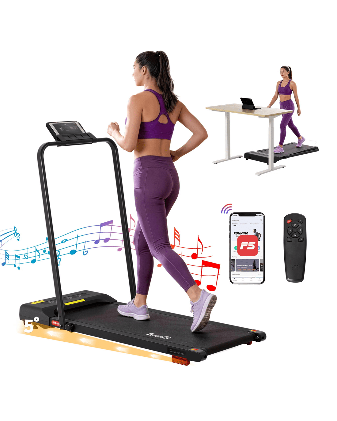 Everfit Treadmill Electric Walking Pad Incline Under Desk 380mm - Black