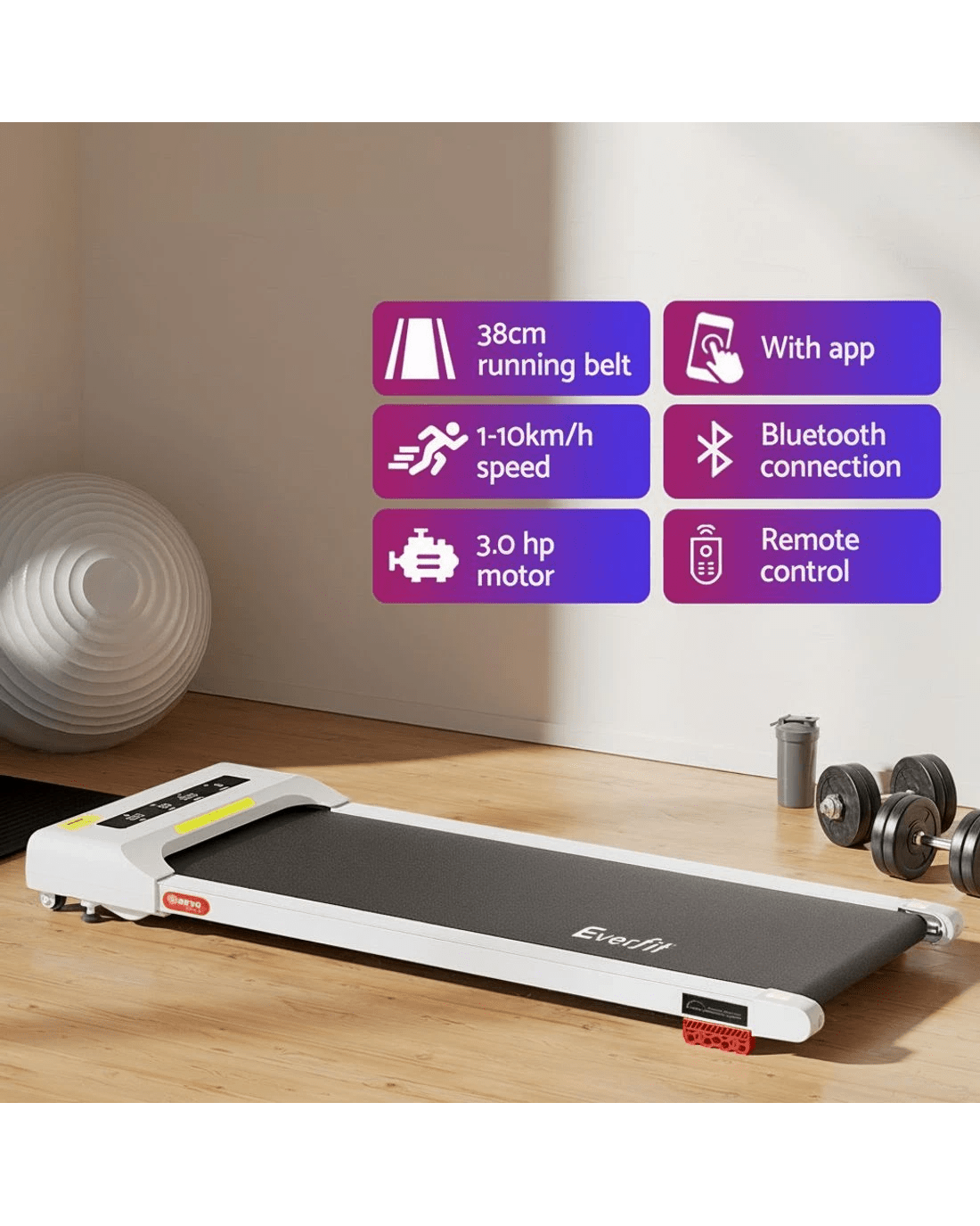 Everfit Treadmill Electric Walking Pad Incline Under Desk Home Gym 380mm - White