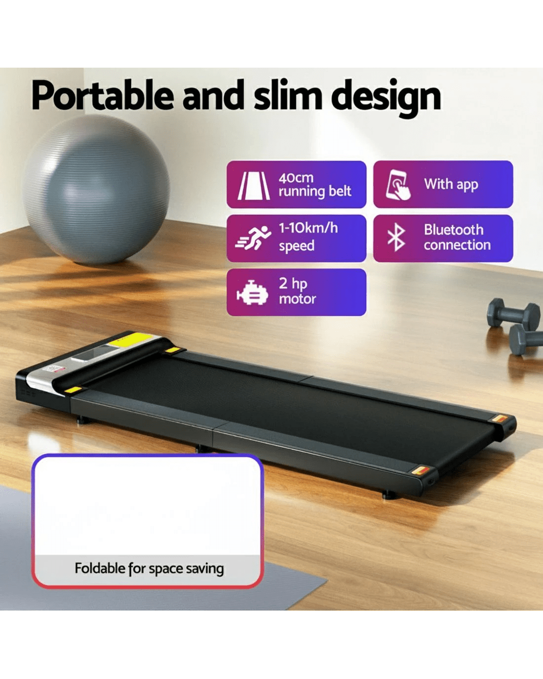 Transform your home office and fitness routine with the Everfit Treadmill Electric Walking Pad. This under-desk treadmill combines convenience and functionality, featuring a 400mm wider running belt for comfort and stability. With its compact, foldable design and smooth wheels, it seamlessly integrates into any space and can be easily stored when not in use.