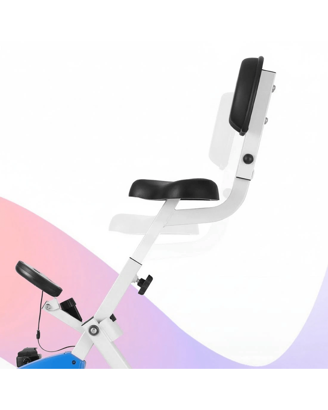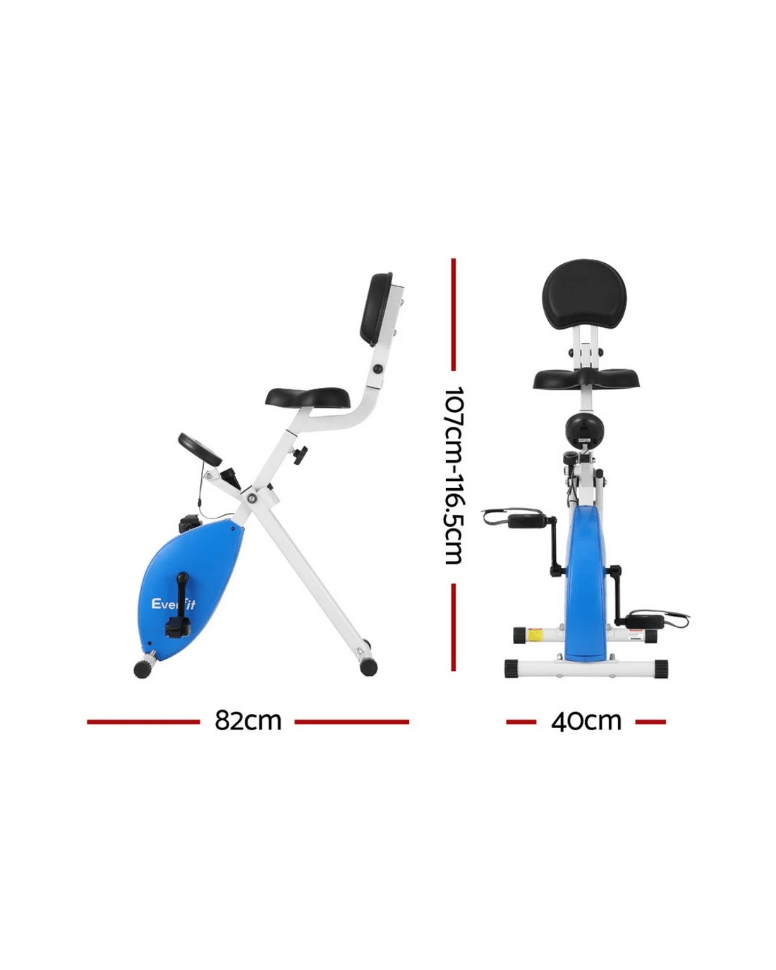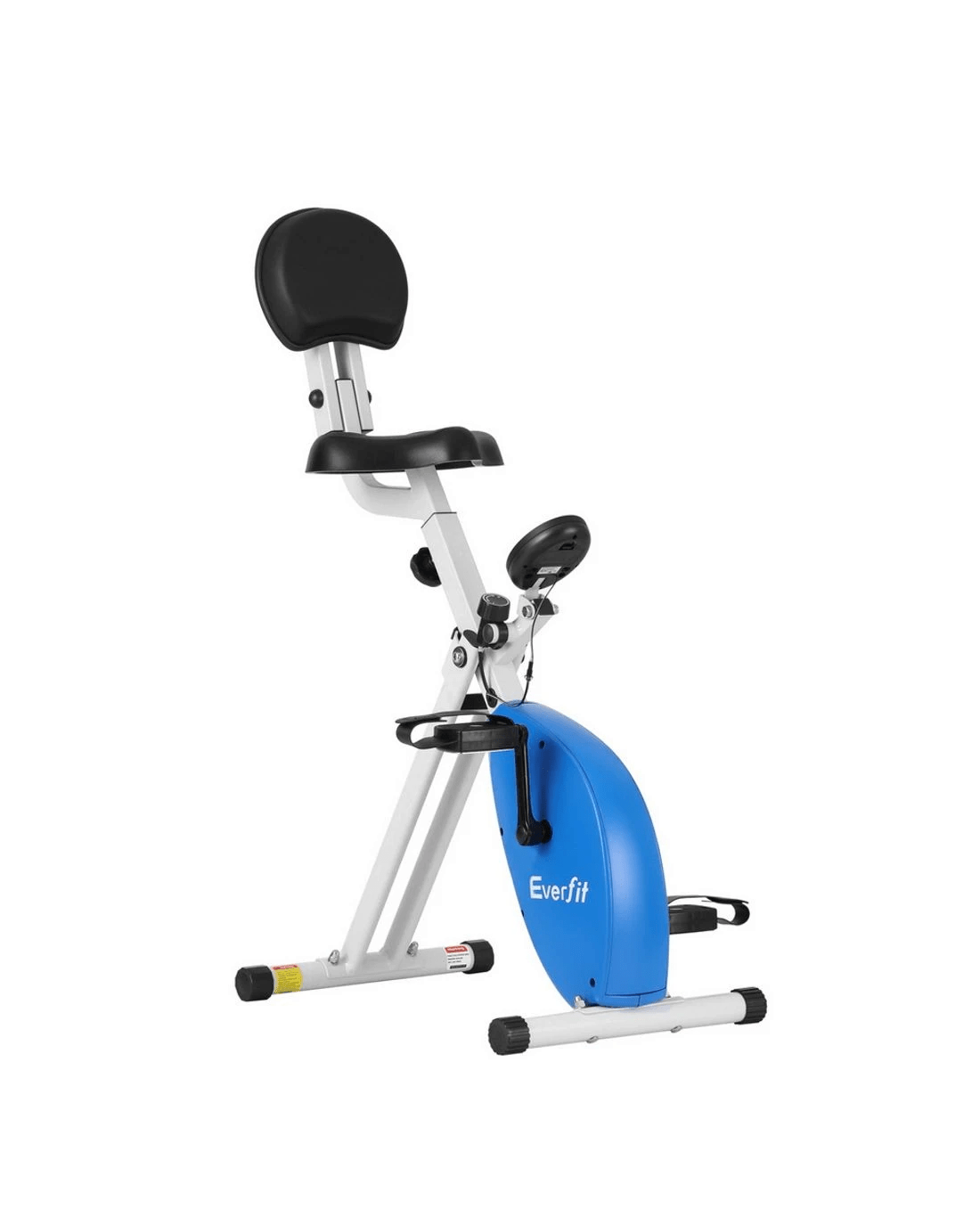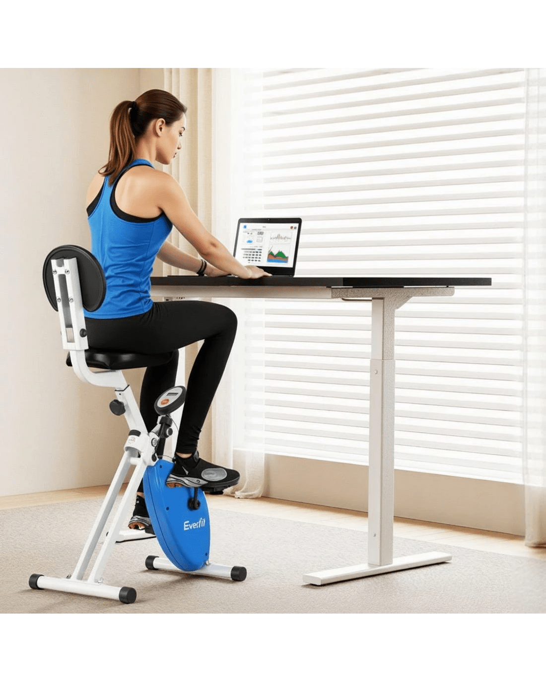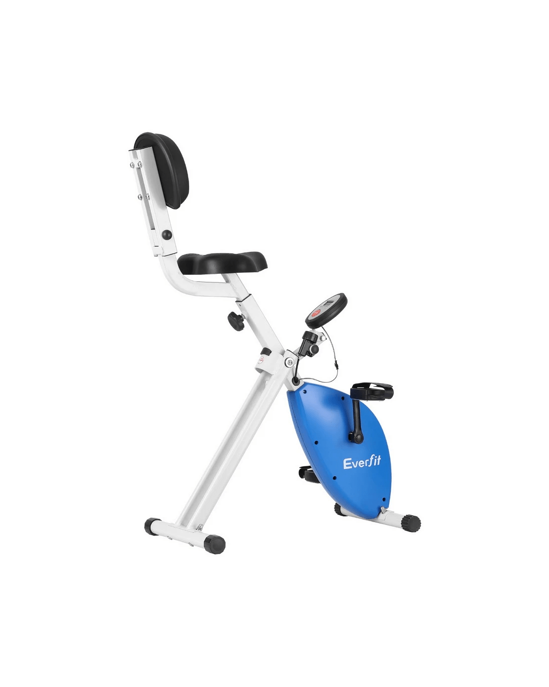 Optimize your active lifestyle with the Everfit Folding X-Bike featuring stepless magnetic resistance for seamless intensity transitions. The innovative collapsible frame (82x40x116.5cm) stores effortlessly, while the contoured seat with backrest supports extended aerobic sessions. Monitor speed, distance, and calories via the LCD display as you pedal. Engineered for versatility: use vertically adjustable under desks, during streaming, or as a standalone trainer. Non-slip feet ensure stability during workouts, accommodating users up to 100kg with smooth, quiet operation.
