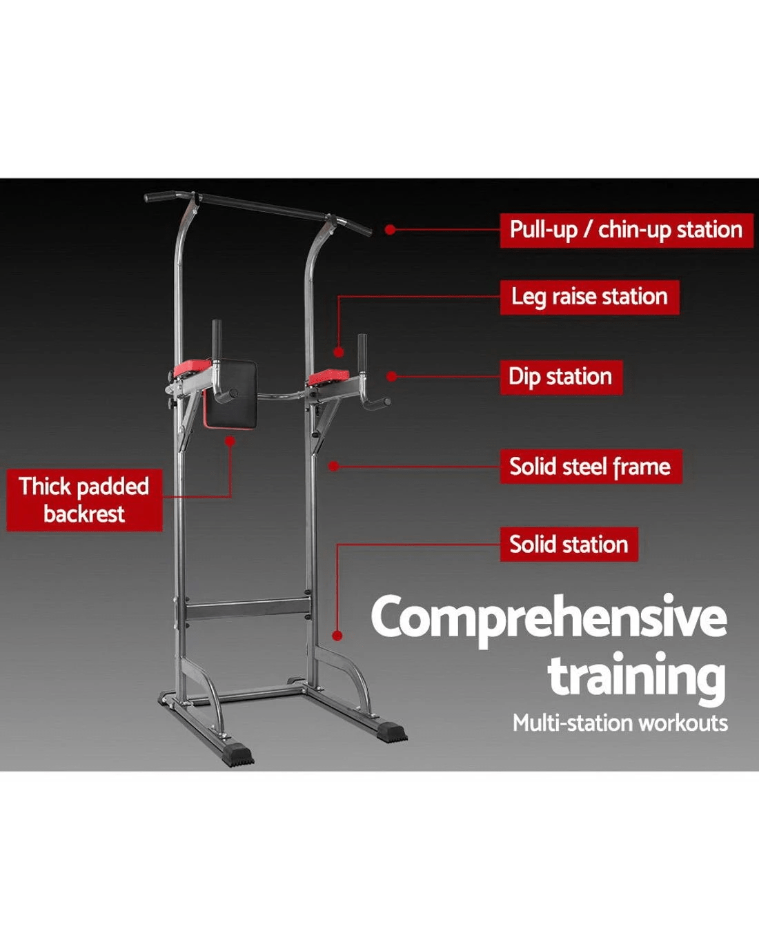 Forget about the gym. Bring the gym to your home with the Everfit Multi-function Gym. This comprehensive workout station is all you need for a great total body workout, offering a huge range of exercises for your upper body and core. It offers a range of exercises such as bench presses, chin ups, dips, pull-ups, weight lifts, leg raises, push-ups and more. Fact is, there is so much you can workout to with this versatile tower of power to push your body to its limits with results that matter. Constructed from heavy-duty, powder-coated tubular steel, the gym station is durable and strong and features large, non-slip rubber feet that will prevent unwanted movement, high-density and sweat- proof cushioning and padded handles and arm supports for truly safe and comfortable training regimes