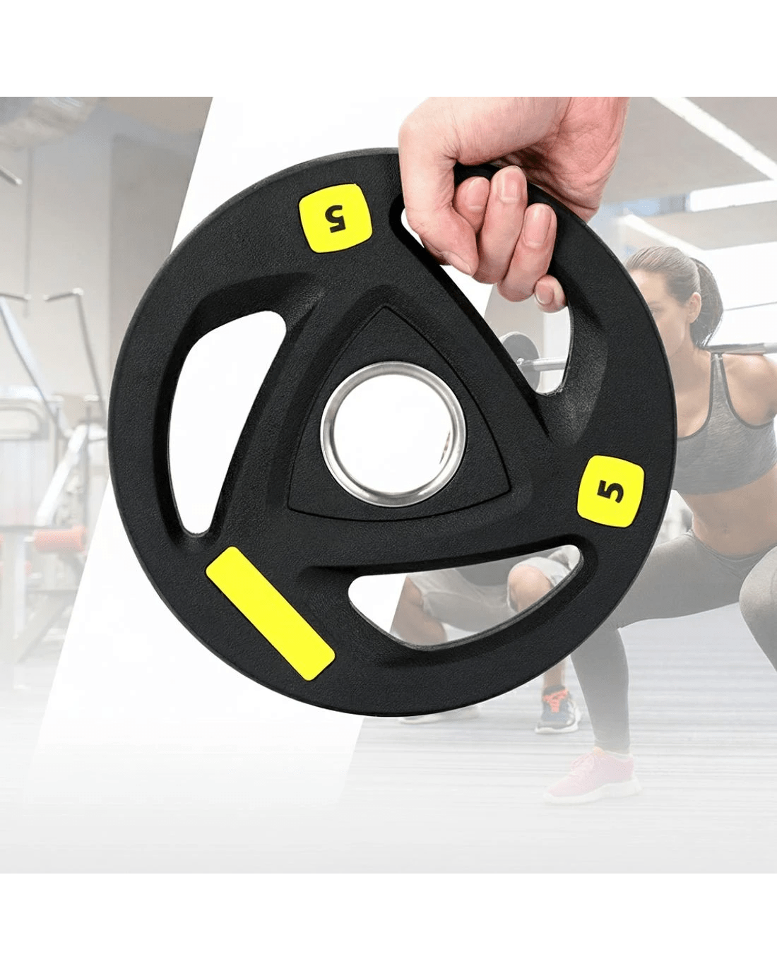 Enhance your weight-lifting routine with the Everfit Weight Plate, available in 15kg/20kg sizes. The weight plates are constructed from heavy-duty cast iron and are designed to be sturdy and tough for all your exercise needs. The plates are covered in a tough rubber coating and feature a three-hole grip for easy handling. These weight plates are simple to use and compatible with most bars, making them versatile for use with dumbbells, barbells, or on their own. A handy weightlifting tool, they can be used for exercises for weight loss, strength training, endurance training and improved cardiovascular performance. Whether you are a beginner or an experienced lifter, Everfit Weight Plates provide a reliable and efficient way to achieve your fitness goals.