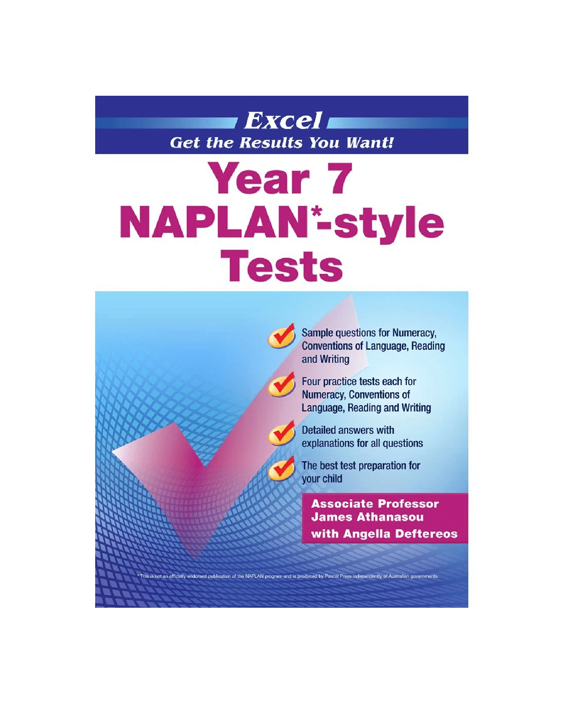 This Excel Year 7 NAPLAN Style Tests book will help you prepare for your year 7 NAPLAN early so you can get a head start. The book has sample questions across all topics include Numeracy, Reading, Conventions of Language and Writing with detailed answers and explanations.