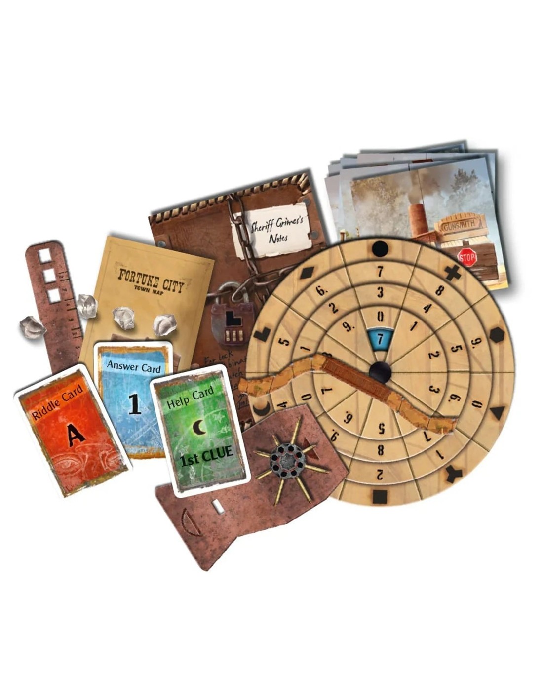 Exit the Game Kidnapped in Fortune City is a puzzle game modeled after escape rooms, and it includes components meant to be folded, written upon, or torn, so it's marketed as a single-use game. Western themed mystery will have you living your cowboy dreams, in puzzle form. Ages: 14 + | Players: 1 - 4 | Playtime: 60 - 120 Mins