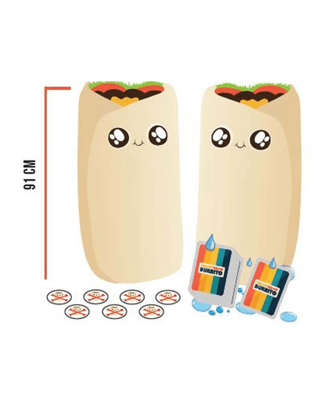 Throw Throw Burrito Extreme Outdoor Edition has all the fun stuff of the original game but we've seriously upgraded the throwable Burritos. Instead of throwing squishy foam at each other, you get to launch GIGANTIC INFLATABLE BURRITOS at your friends while playing with hilarious oversized cards. Includes super durable, water-resistant oversized cards, instructions, tokens, and two 91cm inflatable burritos. Ages: 7 + | Players: 2 - 6