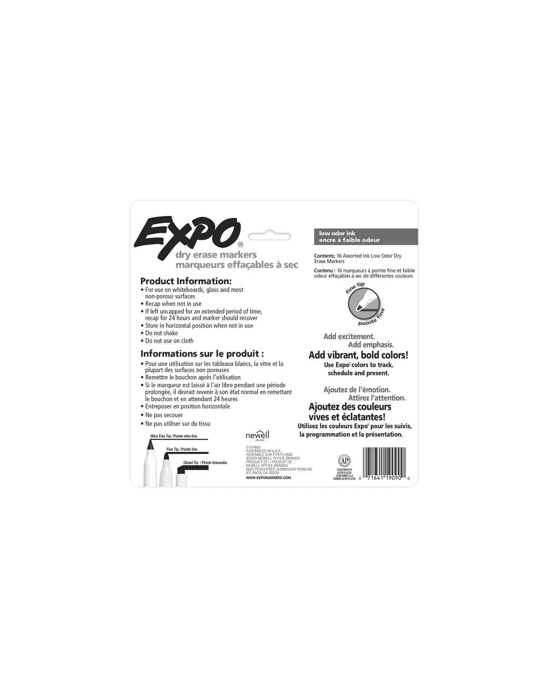 Use these fine-tipped, Expo Low Odour Dry Erase Markers to track, schedule, and present your point in a brilliant fashion. The intense colour takes centre stage on whiteboards from a distance, delivering vivid results. The ink is specially formulated for a low odour, making it ideal for classrooms, small offices, and homes.