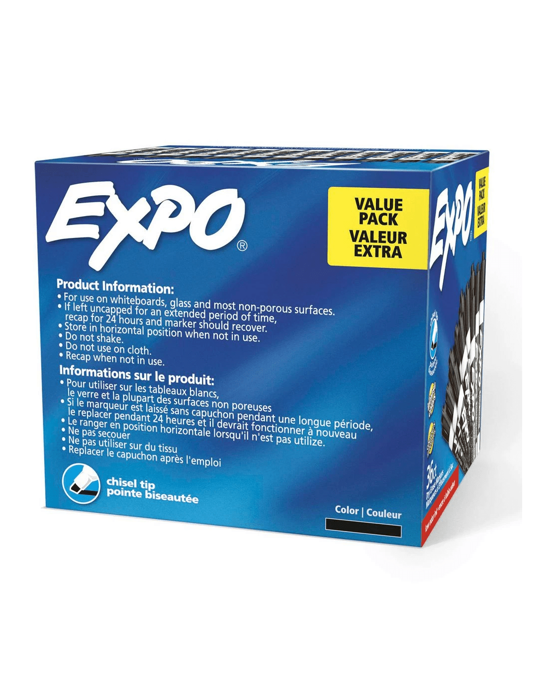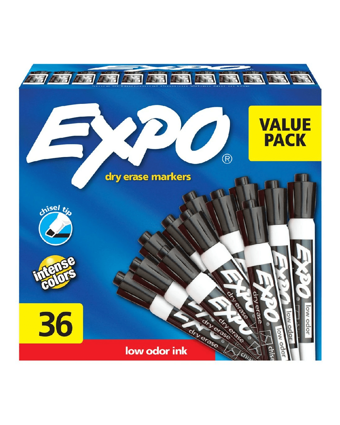These Expo Low Odour Dry Erase markers can be used to track, schedule, and present your points in brilliant fashion. The intense ink takes center stage, even from a distance, adding excitement, emphasis and colour to your work. Plus, the new Expo Ink has been specially formulated to be low odour, making it ideal for classrooms, small offices, and homes.
