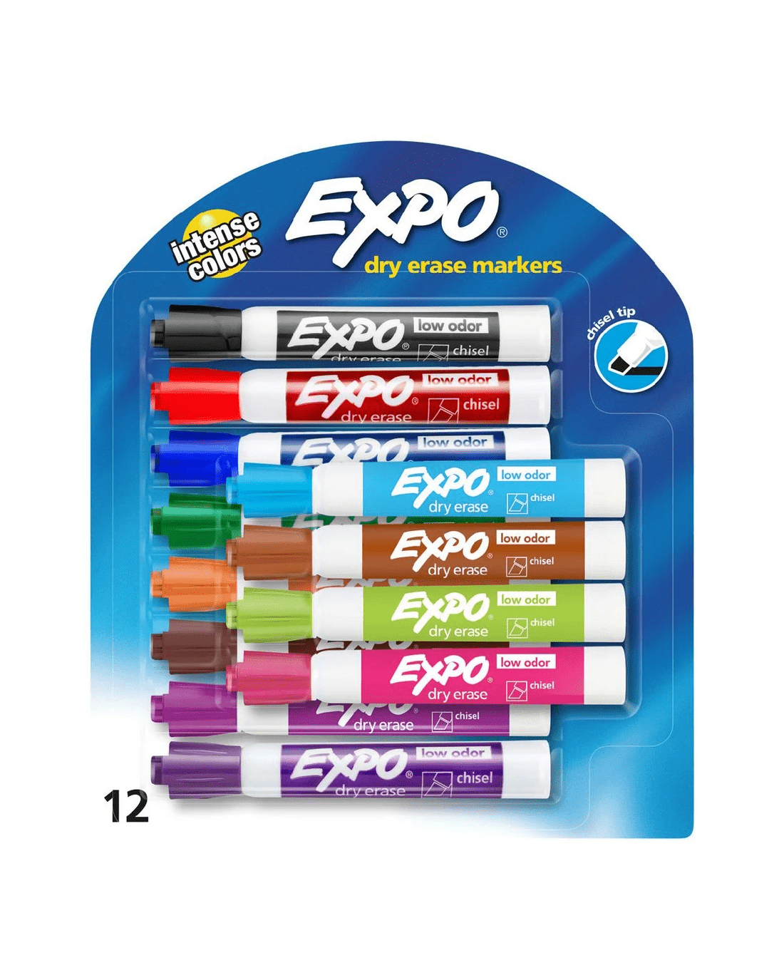 Expo Whiteboard Markers Chisel Intense Assorted 12 Pack