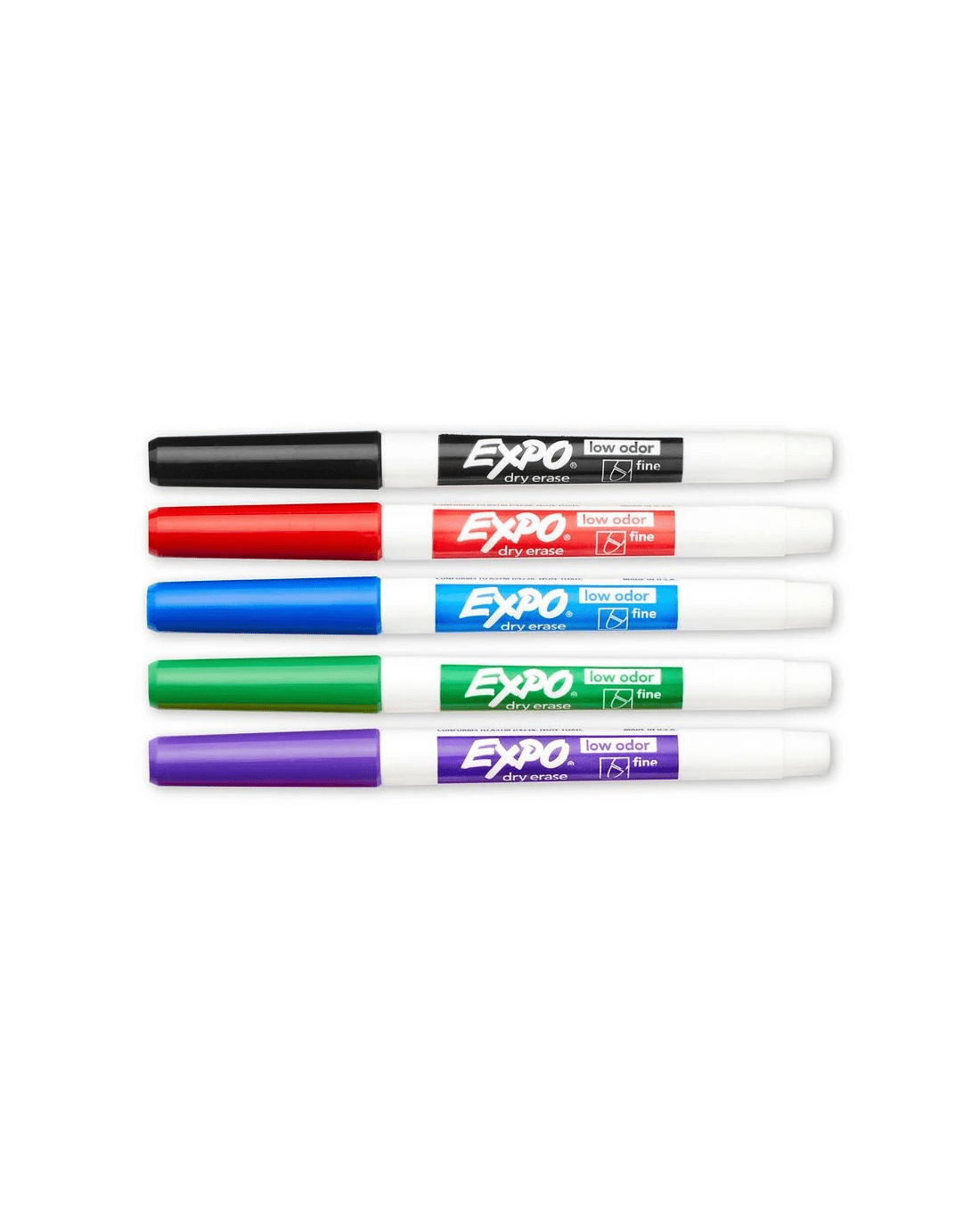 These Expo Low Odour Dry Erase markers can be used to track, schedule, and present your points in brilliant fashion. The intense ink takes center stage, even from a distance, adding excitement, emphasis and colour to your work. Plus, the new Expo Ink has been specially formulated to be low odour, making it ideal for classrooms, small offices, and homes.