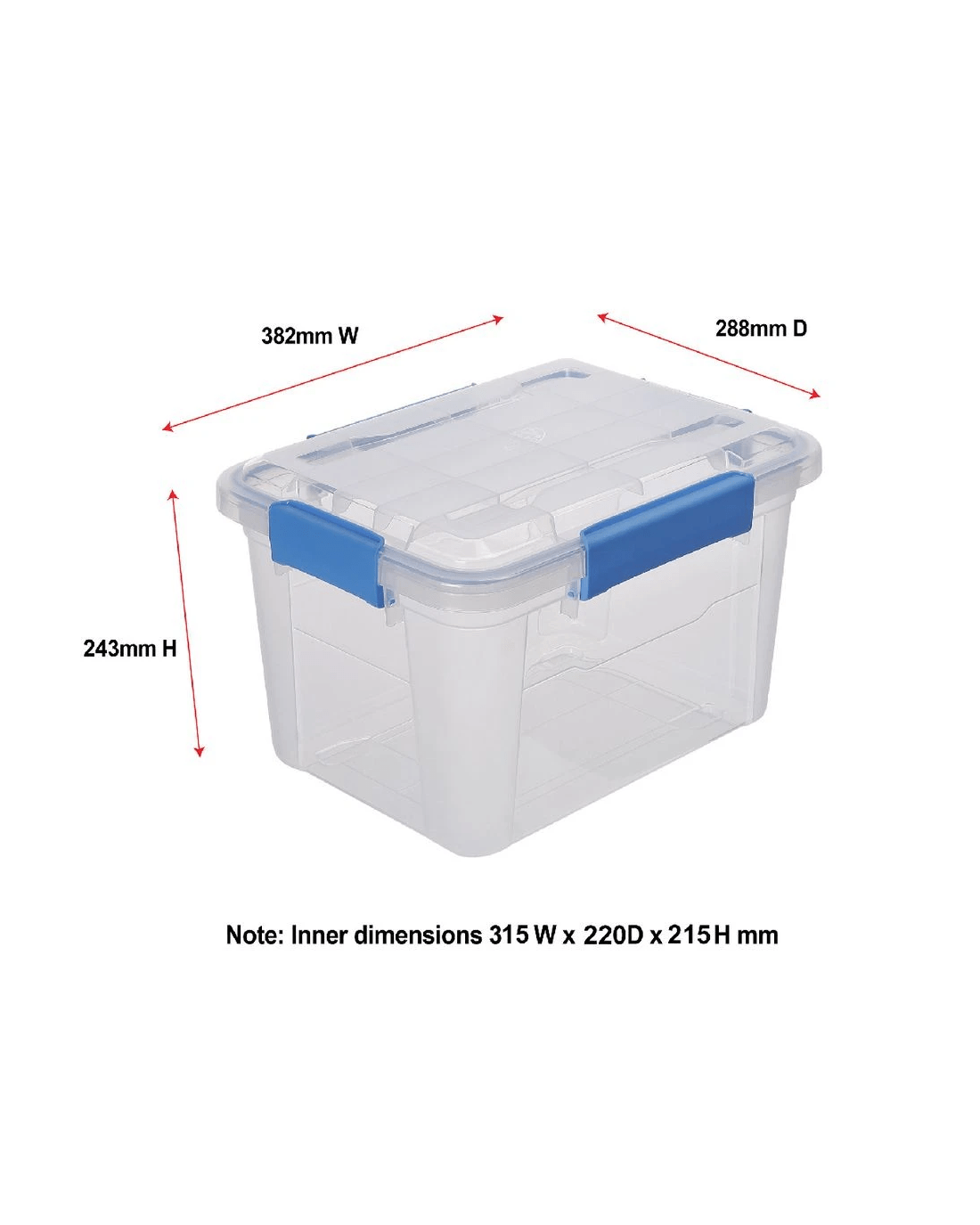 - Internal Dimensions — 315 W x 220 D x 215 H mm.