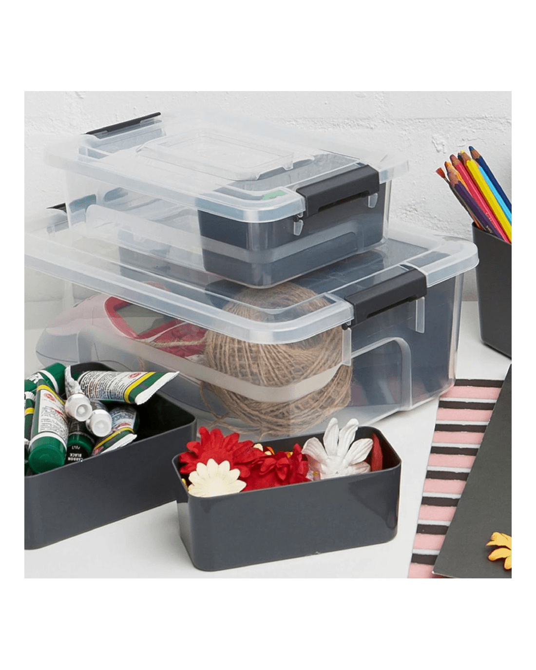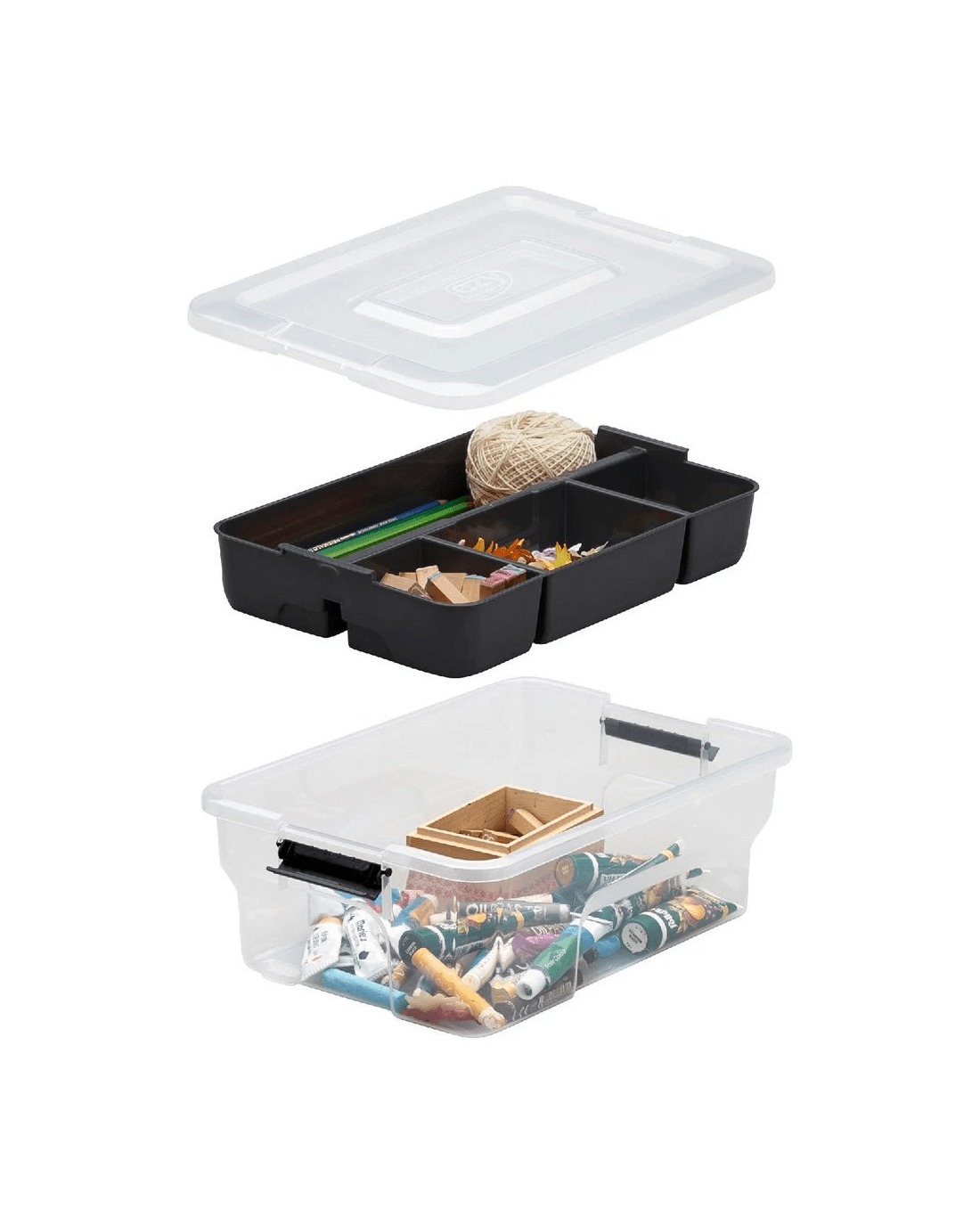 - The dual hinging lid clips tightly to secure your items inside.