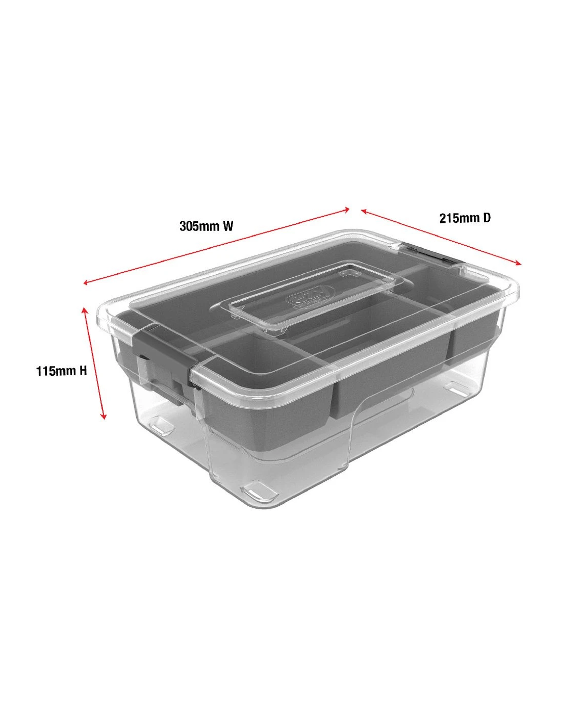 This Sort It Storage Container is a great way to keep things organised in your home, workspace or garage. This container is part of a mini customisable, stackable system with accessories you can use with each container to suit your individual storage needs. The included organisational tray is a great way to keep small items together.