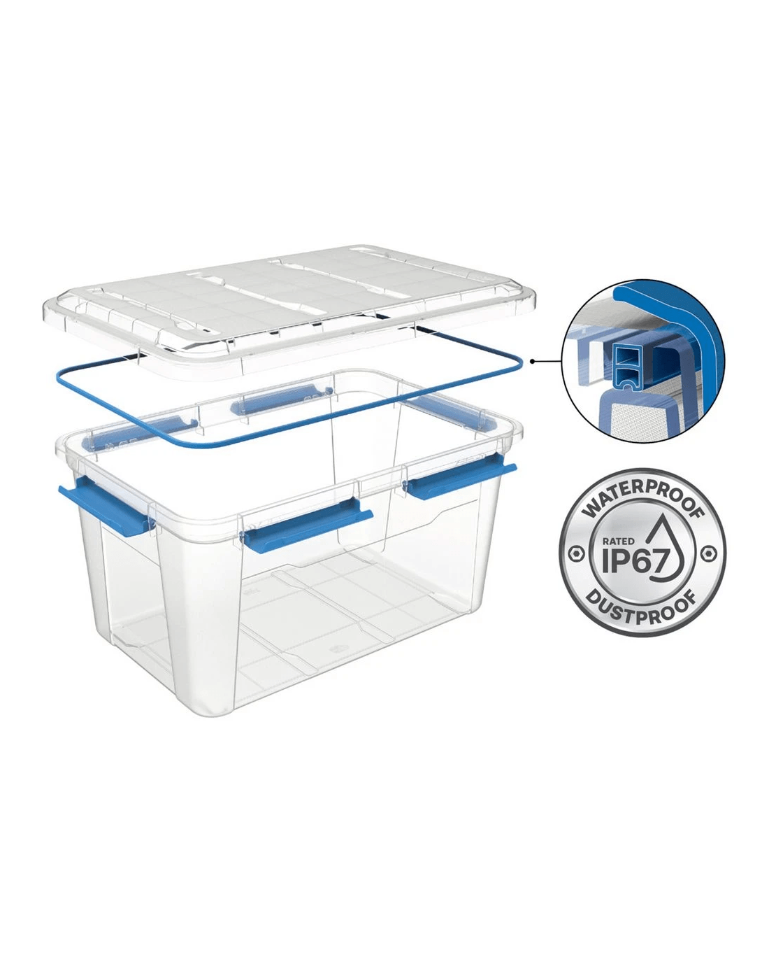 Protect your belongings from moisture and dirt with our range of Ezy Storage Waterproof IP67 storage containers, they are ideal for any workplace office storage, anywhere around the home and garage, as well as for camping or boating. The strong pressure clasp latches provide high clamping pressure allowing the silicone seal to be watertight and are perfect for damp storage areas. The Waterproof engineered grade silicone gasket is designed with precision flexibility and rebound to repel water and protect your valuables.
