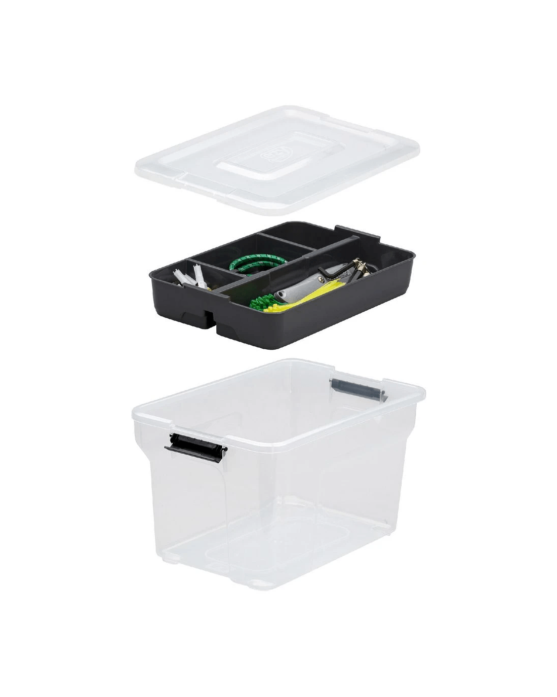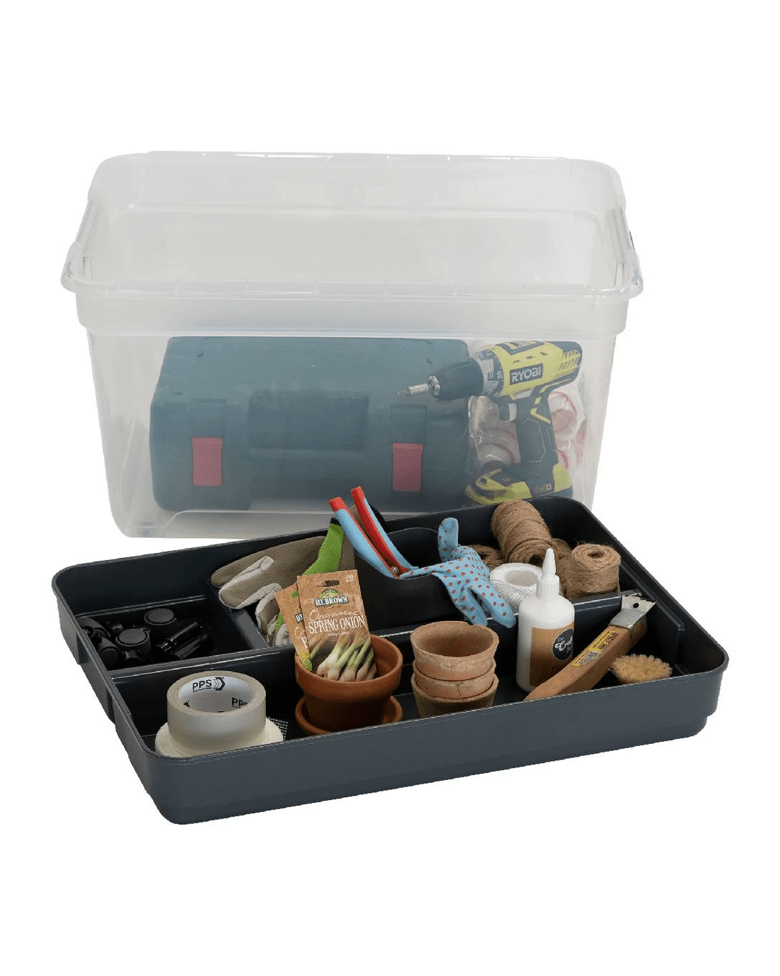 This Sort It Storage Container is a great way to keep things organised in your home, workspace or garage. This container is part of a mini customisable, stackable system with accessories you can use with each container to suit your individual storage needs. The included organisational tray is a great way to keep small items together.